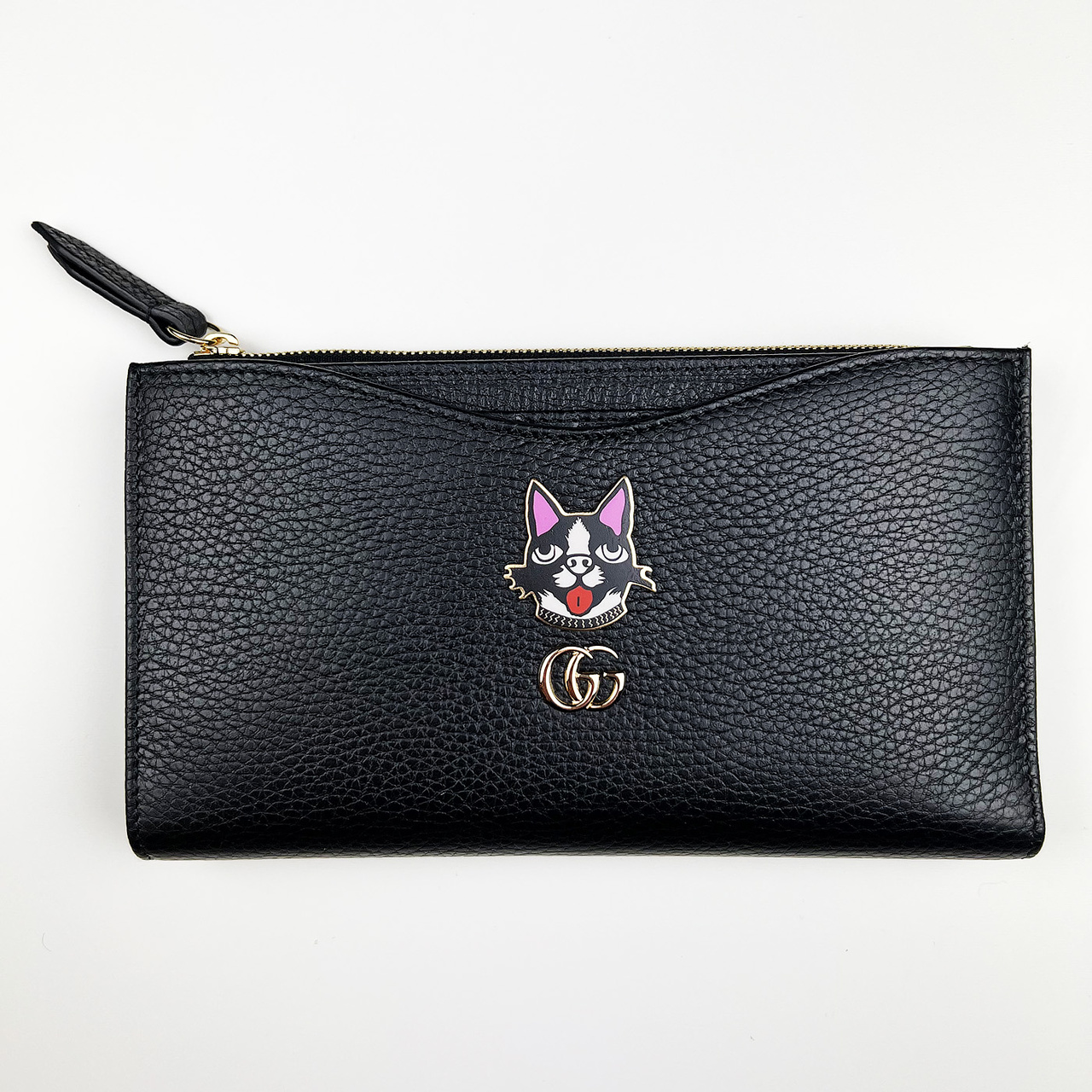 "Этот клатч Gucci выпущен ограниченным тиражом, а это значит, что вы будете среди немногих женщин, которые владеют одним из них. Он входит в капсульную коллекцию, главными героями которой стали бостонские терьеры креативного директора Gucci Алессандро Микеле по кличке Боско и Орсо. Аксессуар изготовлен из кожи, спереди украшен мордочкой терьера Боско и логотипом GG Marmont."