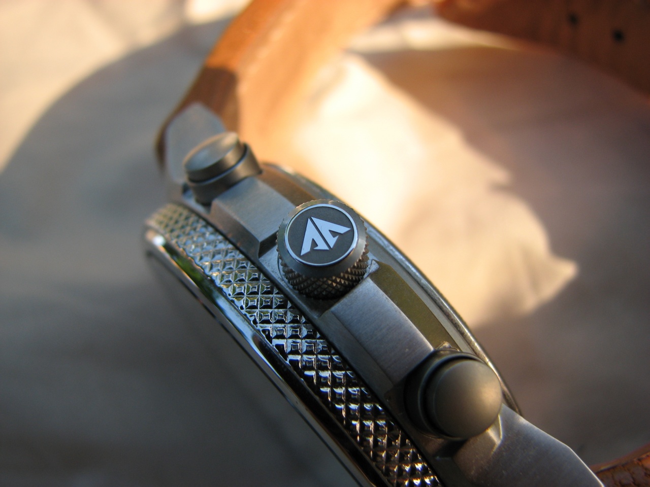 Обработка мелких деталей на высоте, под солнечными лучами вспыхивают маленькими зайчиками разные риски и окантовки субциферов. Заводная головка имеет приятную насечку для захвата пальцами и значок Promaster, головка логарифмической линейки на 8ч - просто гладкая. Задняя крышка имеет красивую глубокую гравировку. Единственное опасение вызывают кнопки, зазор между пушером и гильзой явно располагает к попаданию туда грязи и пыли. Безель - полировка, стекло на одном с ним уровне и занимает визуально всю поверхность. Как по мне - удачное решение, часы смотрятся миниатюрнее своих размеров, но полировка неизбежно соберет паутинку мелких царапинок.