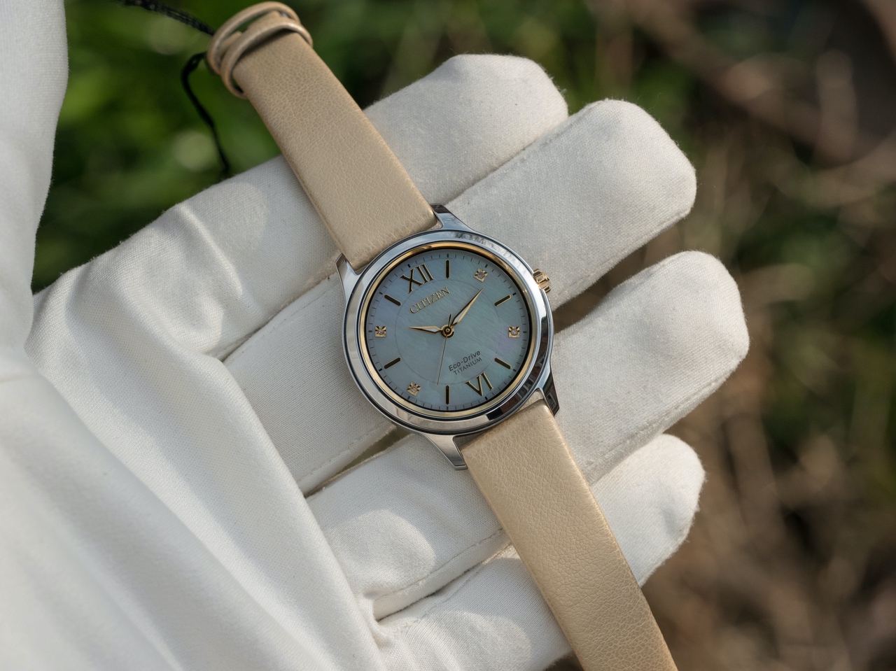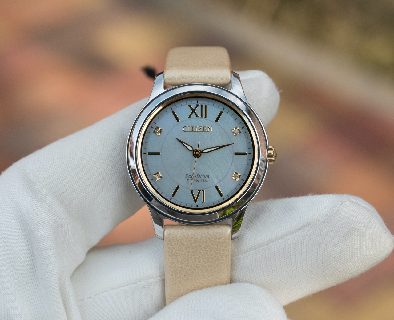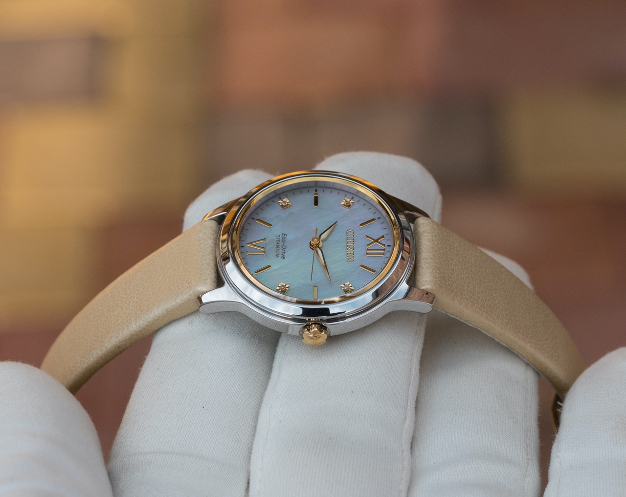 Очень красивый перламутровый циферблат золотистыми акцентами