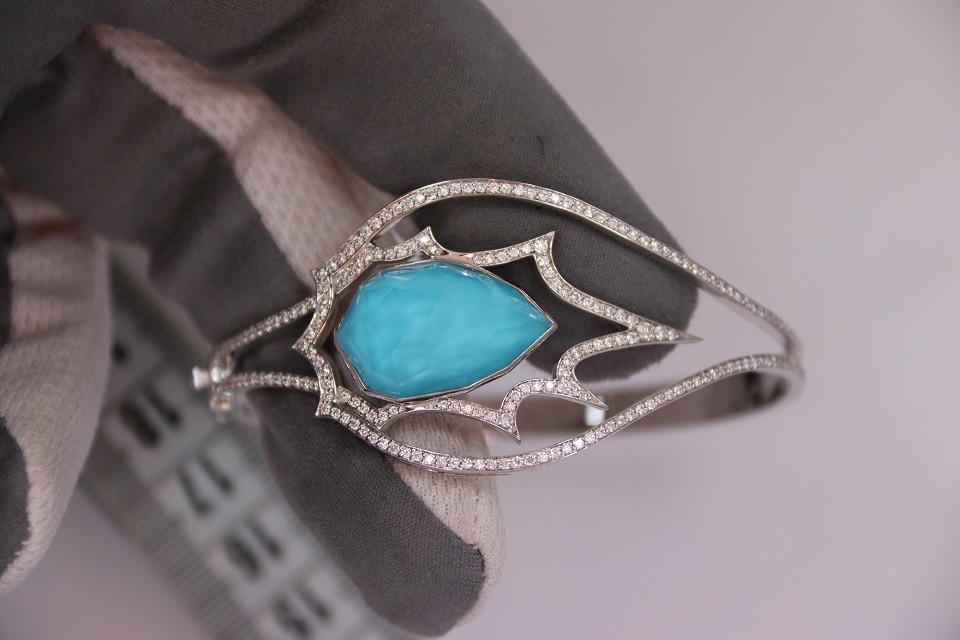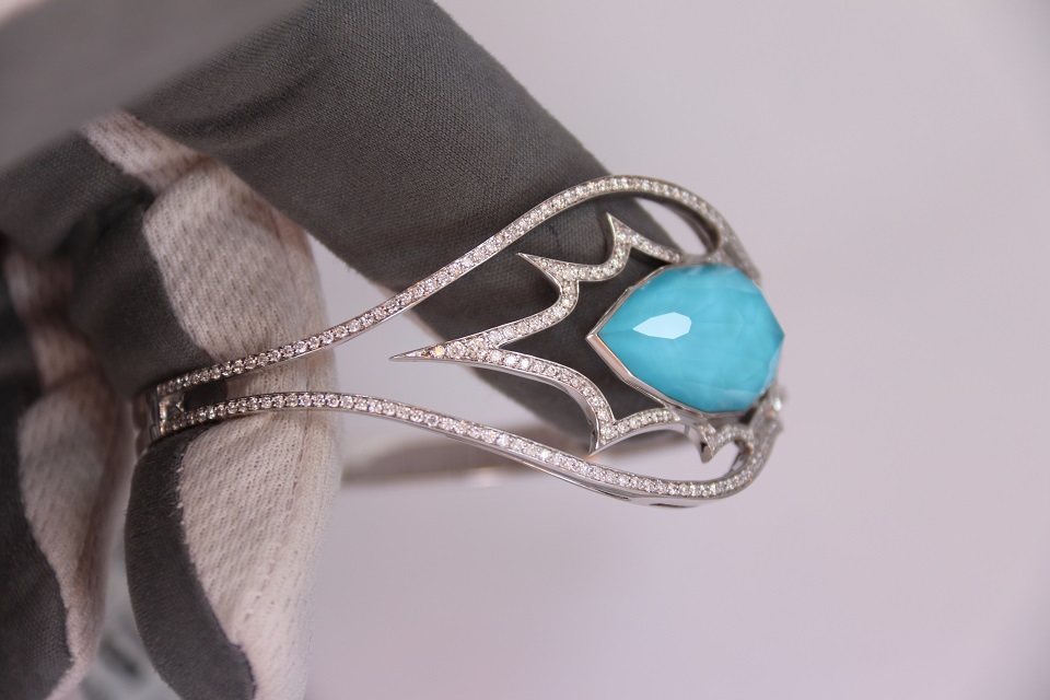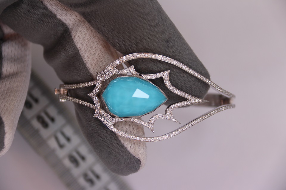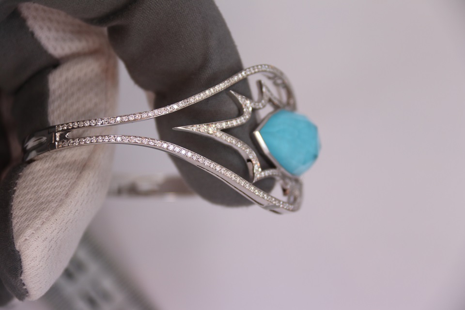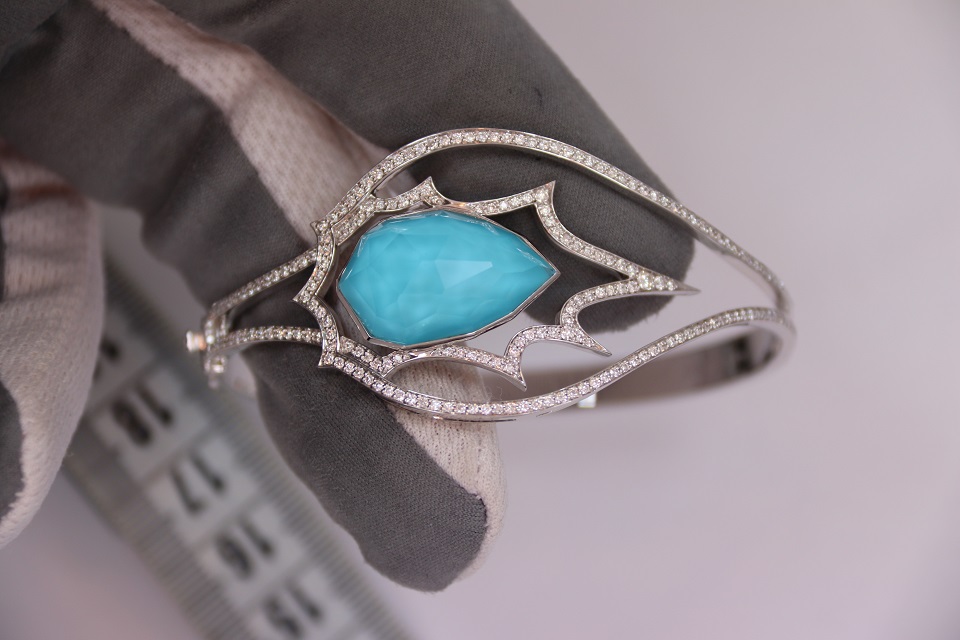 Неспешно продается новый золотой браслет с бирюзой и бриллиантами