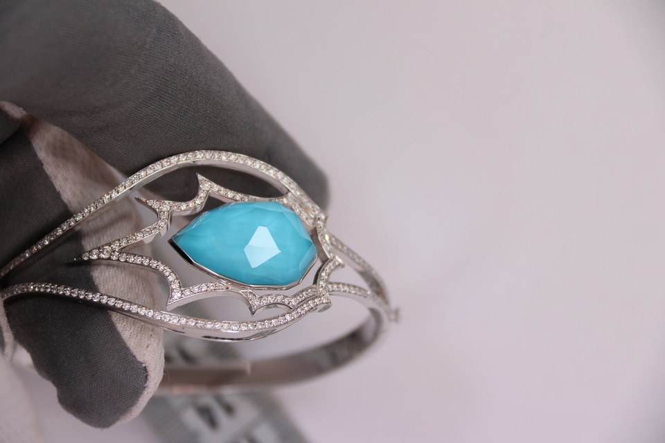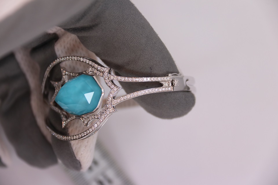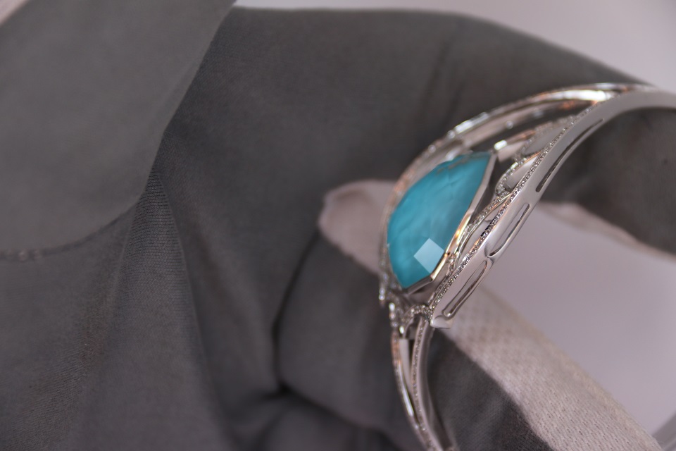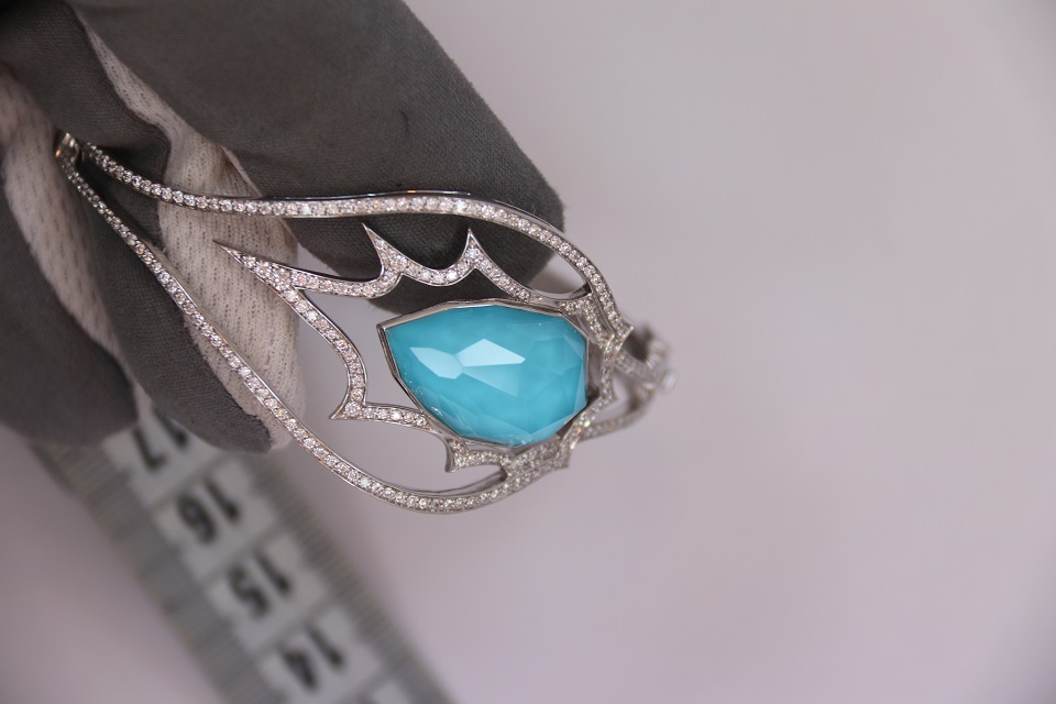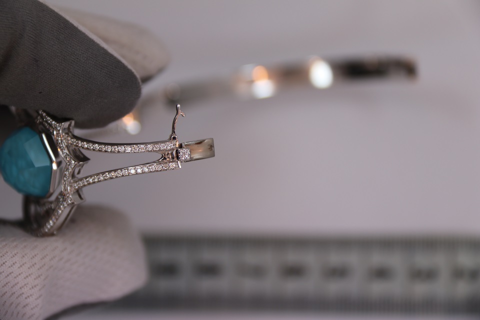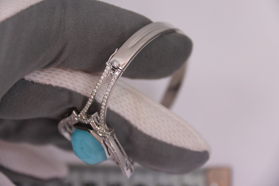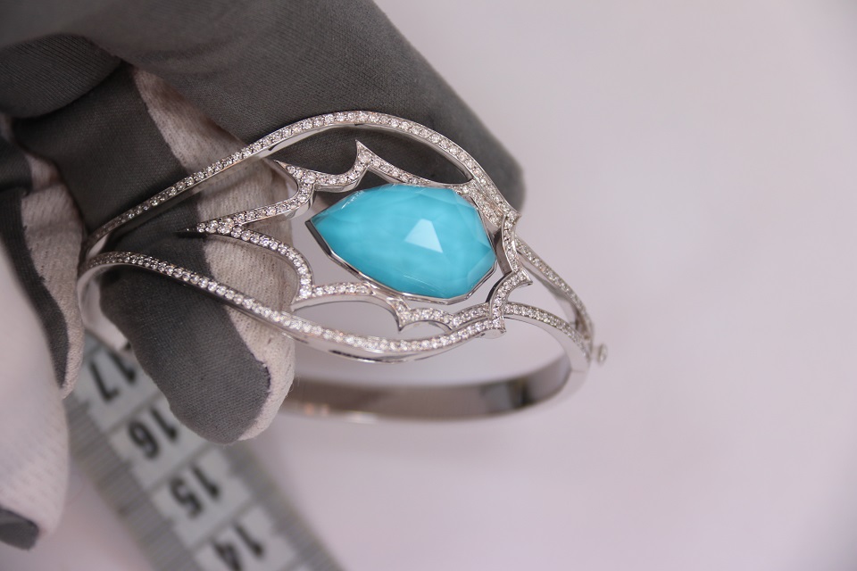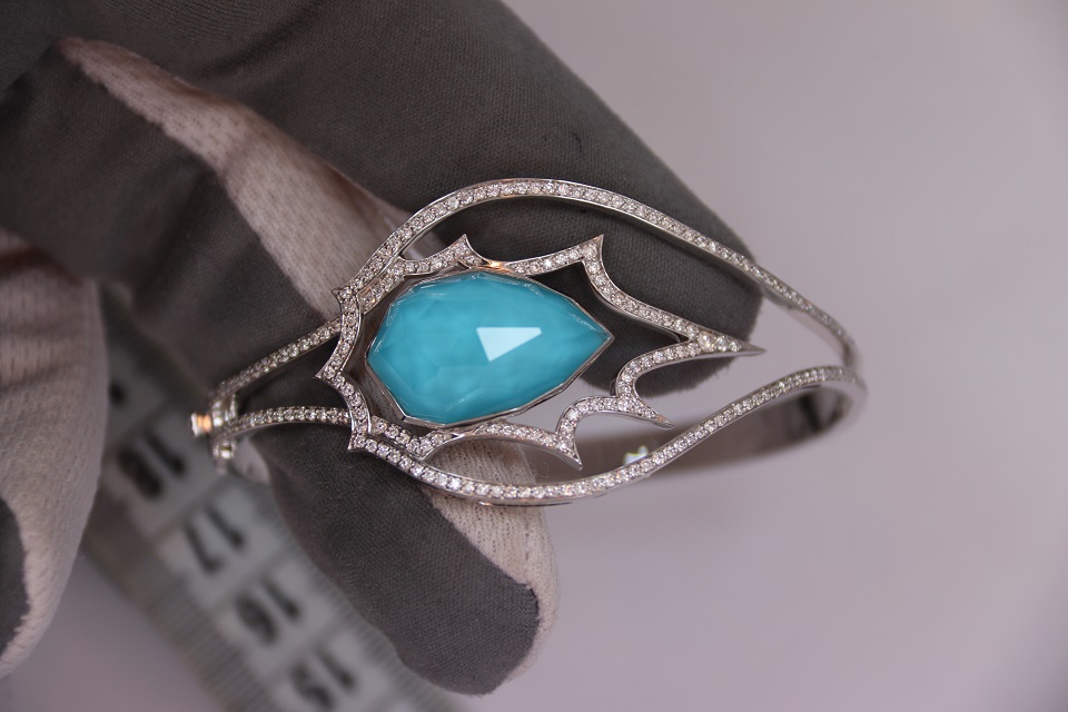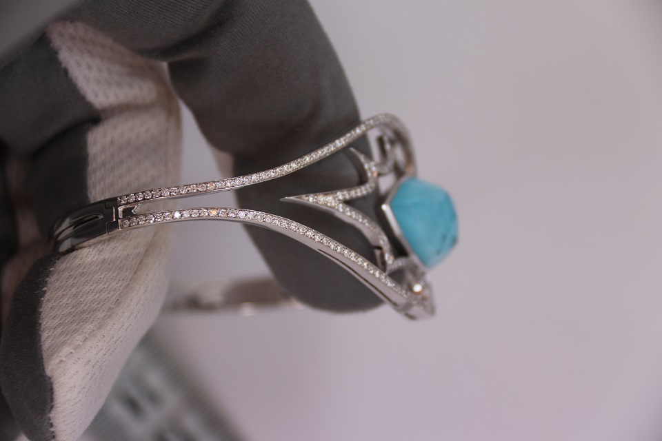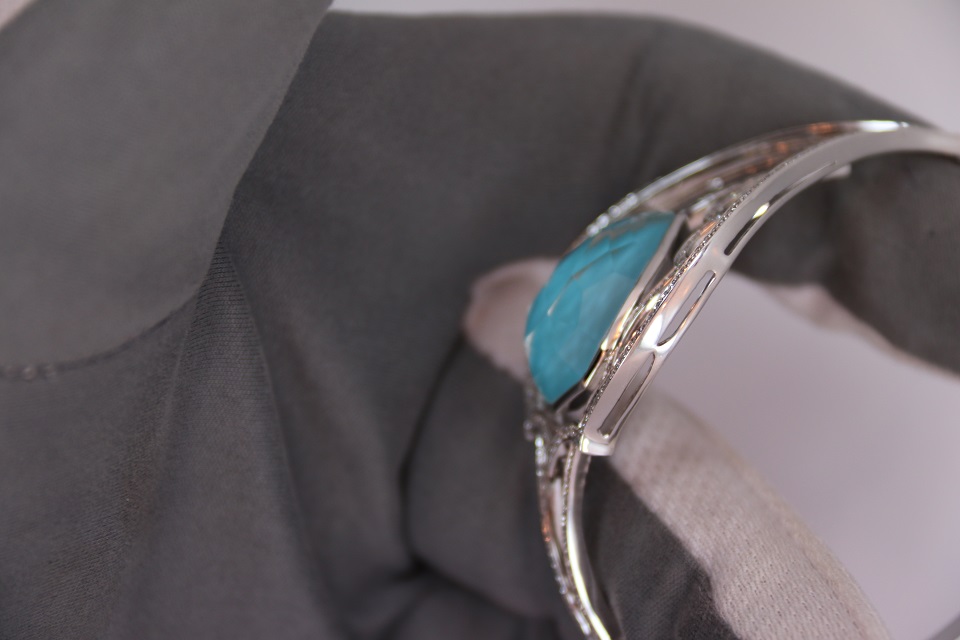Белое золото 18к / 750 пробы, бриллианты, бирюза, кварц.