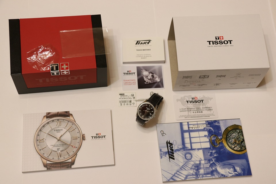 Комплект: часы, бирка, шкатулка, инструкция, 2 брошюры, гарантийная карта, карта-сертификат на бриллианты.