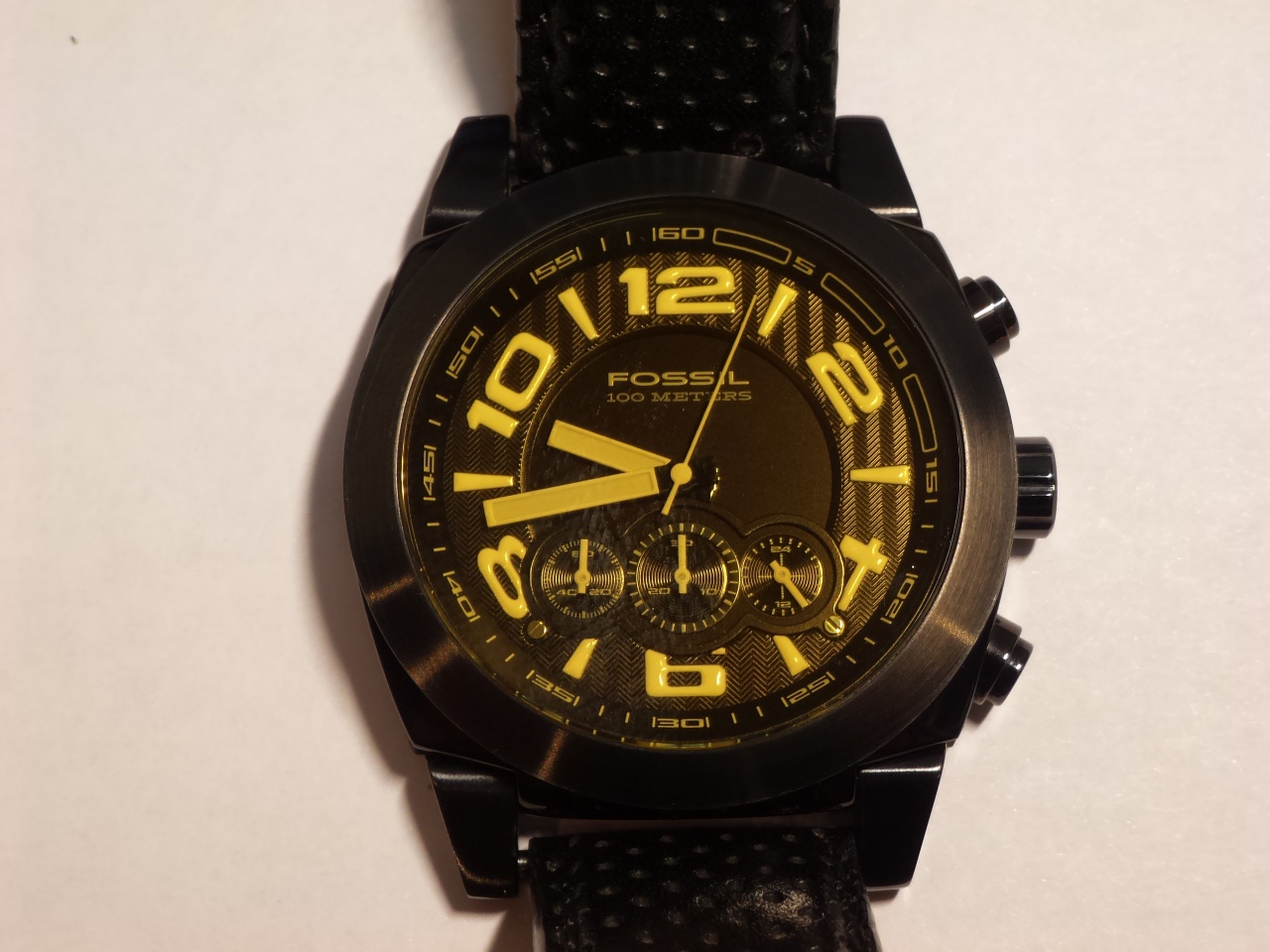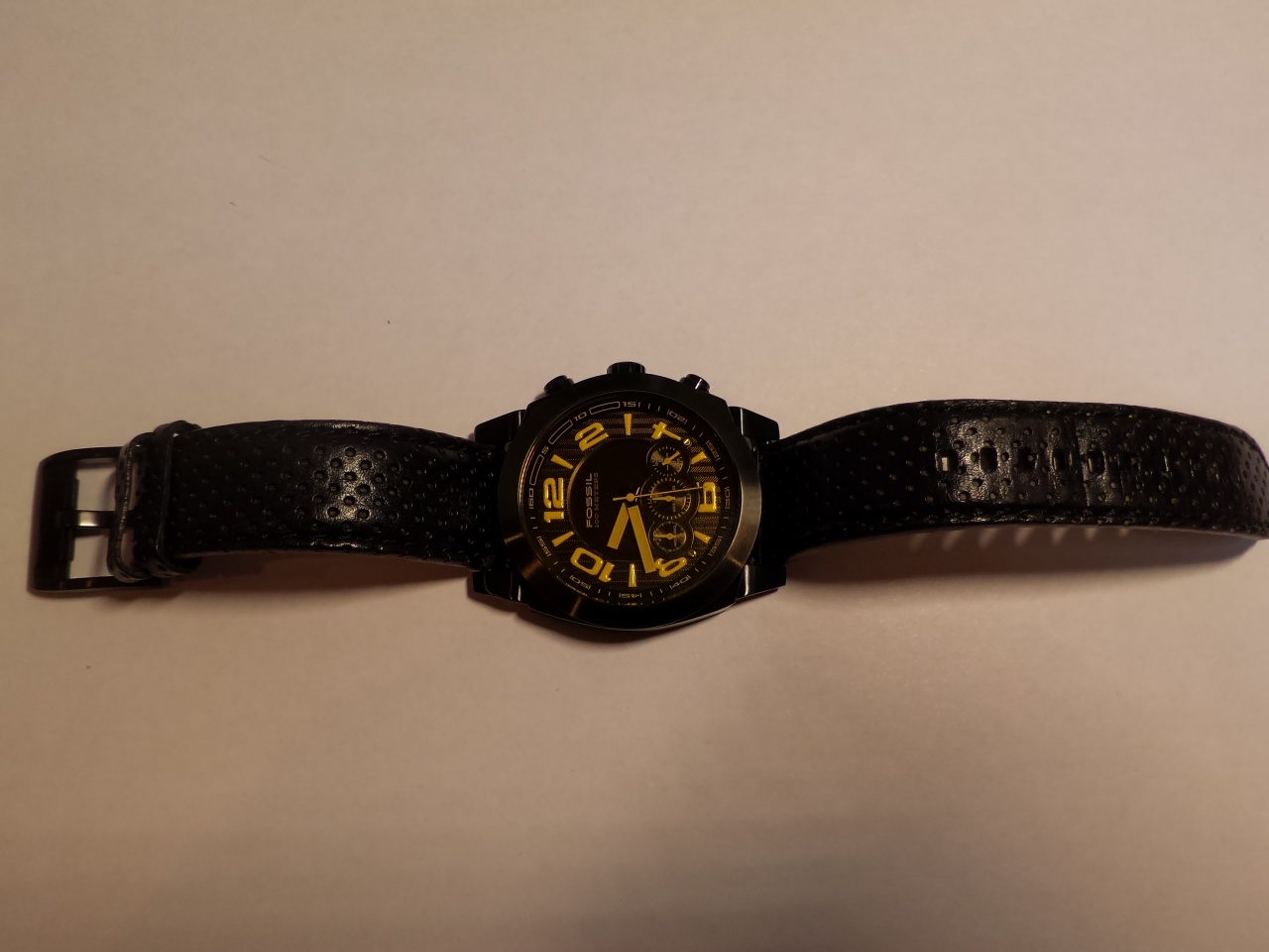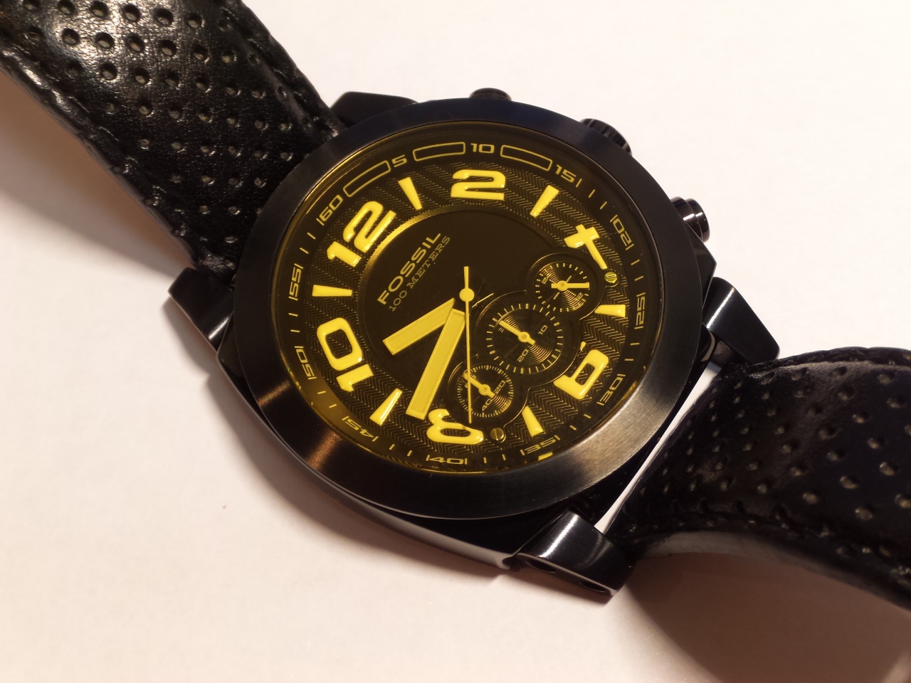 Более 10 лет назад я приобрел часы FOSSIL CH-2527 110804. Увидел я их в витрине магазина в Гостином Дворе (СПб). Они мне как-то приглянулись, и, в то время мне очень хотелось иметь чёрные часы. Часы в корпусе из стали с обычным стеклом жёлтого цвета, на корпусе указана водозащита 100 м., но я не погружал часы в воду, не рисковал. Часы стилизованы под спортивный хронограф, но малые циферблаты малоинформативны, хотя и рабочие. К ходу часов претензий нет. Внутри часов стоит кварцевый механизм , около 2см в диаметре. На внутренней стороне крышки часов красуется надпись CHINA. (Часы покупал в фирменном магазине) Ремешок кожаный, и даже сделан неплохо, только стал жестковат - эти часы я редко одеваю. Бакля симпатичная из черненой стали. Интересны подвижные элементы крепления ремешка к корпусу часов, сделанные из сатиновой черненой стали. Желтое стекло раньше меня раздражало, но сейчас я считаю такой дизайнерский ход вполне нормальным.