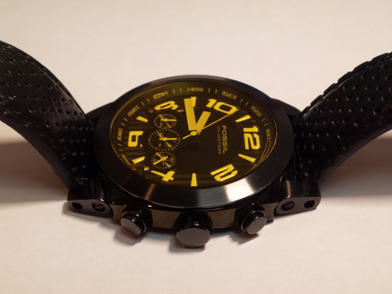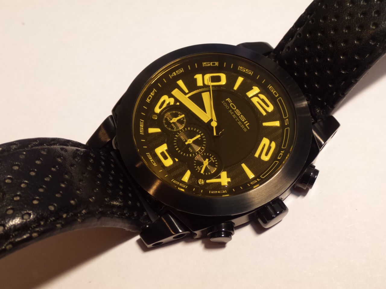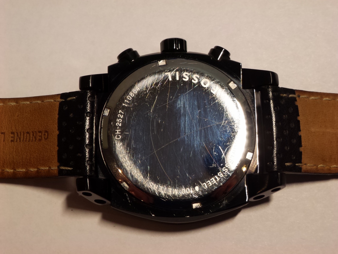 Более 10 лет назад я приобрел часы FOSSIL CH-2527 110804. Увидел я их в витрине магазина в Гостином Дворе (СПб). Они мне как-то приглянулись, и, в то время мне очень хотелось иметь чёрные часы. Часы в корпусе из стали с обычным стеклом жёлтого цвета, на корпусе указана водозащита 100 м., но я не погружал часы в воду, не рисковал. Часы стилизованы под спортивный хронограф, но малые циферблаты малоинформативны, хотя и рабочие. К ходу часов претензий нет. Внутри часов стоит кварцевый механизм , около 2см в диаметре. На внутренней стороне крышки часов красуется надпись CHINA. (Часы покупал в фирменном магазине) Ремешок кожаный, и даже сделан неплохо, только стал жестковат - эти часы я редко одеваю. Бакля симпатичная из черненой стали. Интересны подвижные элементы крепления ремешка к корпусу часов, сделанные из сатиновой черненой стали. Желтое стекло раньше меня раздражало, но сейчас я считаю такой дизайнерский ход вполне нормальным.