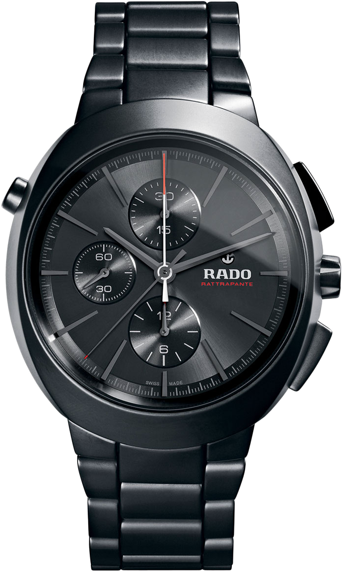 лимитированную коллекцию Rado D-Star Rattrapante Limited Edition в матовом корпусе из высокотехнологичной керамики чёрного цвета. На черном циферблате расположились часовые метки и три счетчика хронографа. Кончик секундной стрелки и логотип окрашены в красный цвет, что в свою очередь дает гармоничное сочетание. Дополняет корпус классический, трехрядный керамический браслет с застежкой «бабочка» из титана с черным матовым керамическим покрытием. Размер корпуса составляет 48,6 x 45,4 x 14,7 мм.