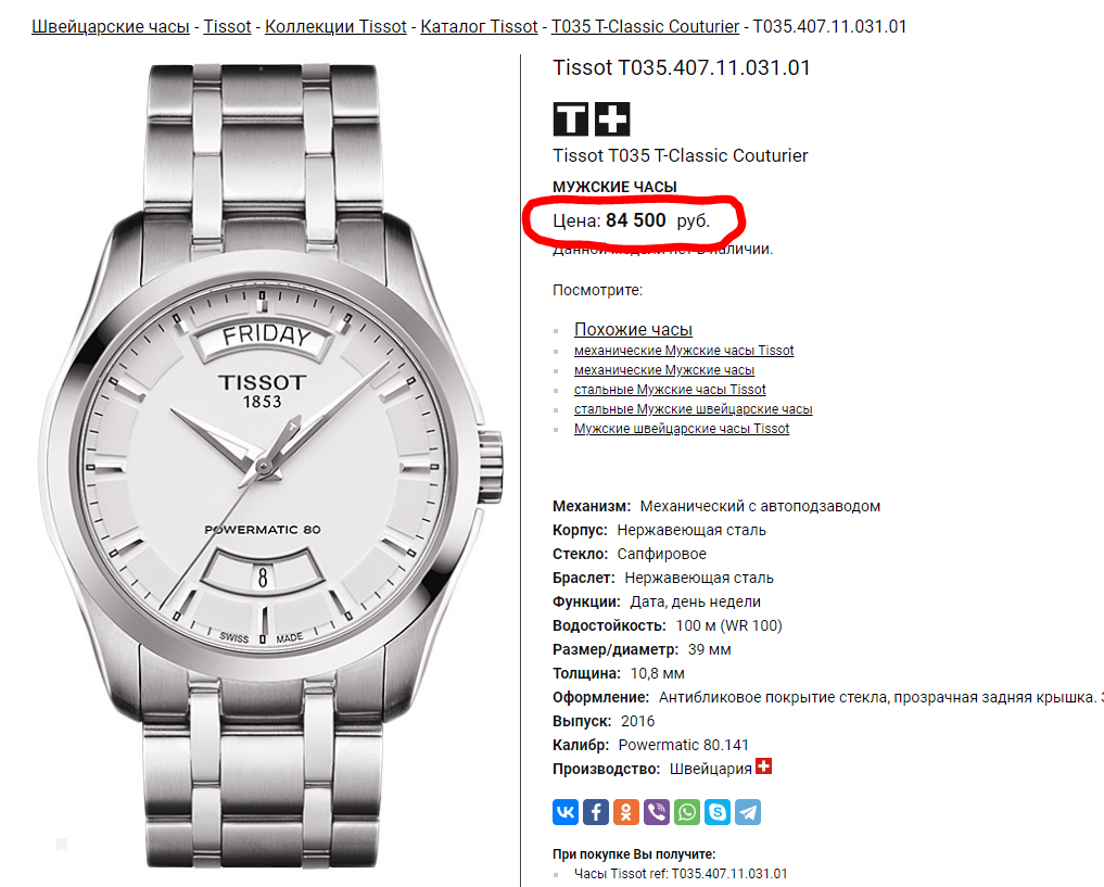 TISSOT Couturier Auto Day-Date T0354071103101. Браслет / Белый цифер / d=39mm - Часовой форум Watch.ru