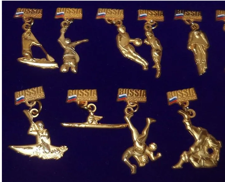 Набор значков XXX олимпиады с РОССИЙСКОЙ СИМВОЛИКОЙ. Лондон. 2012 год