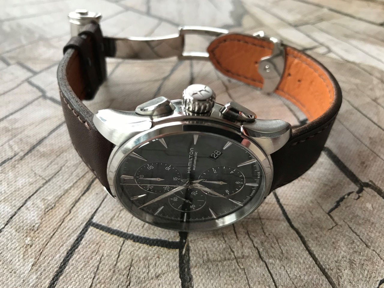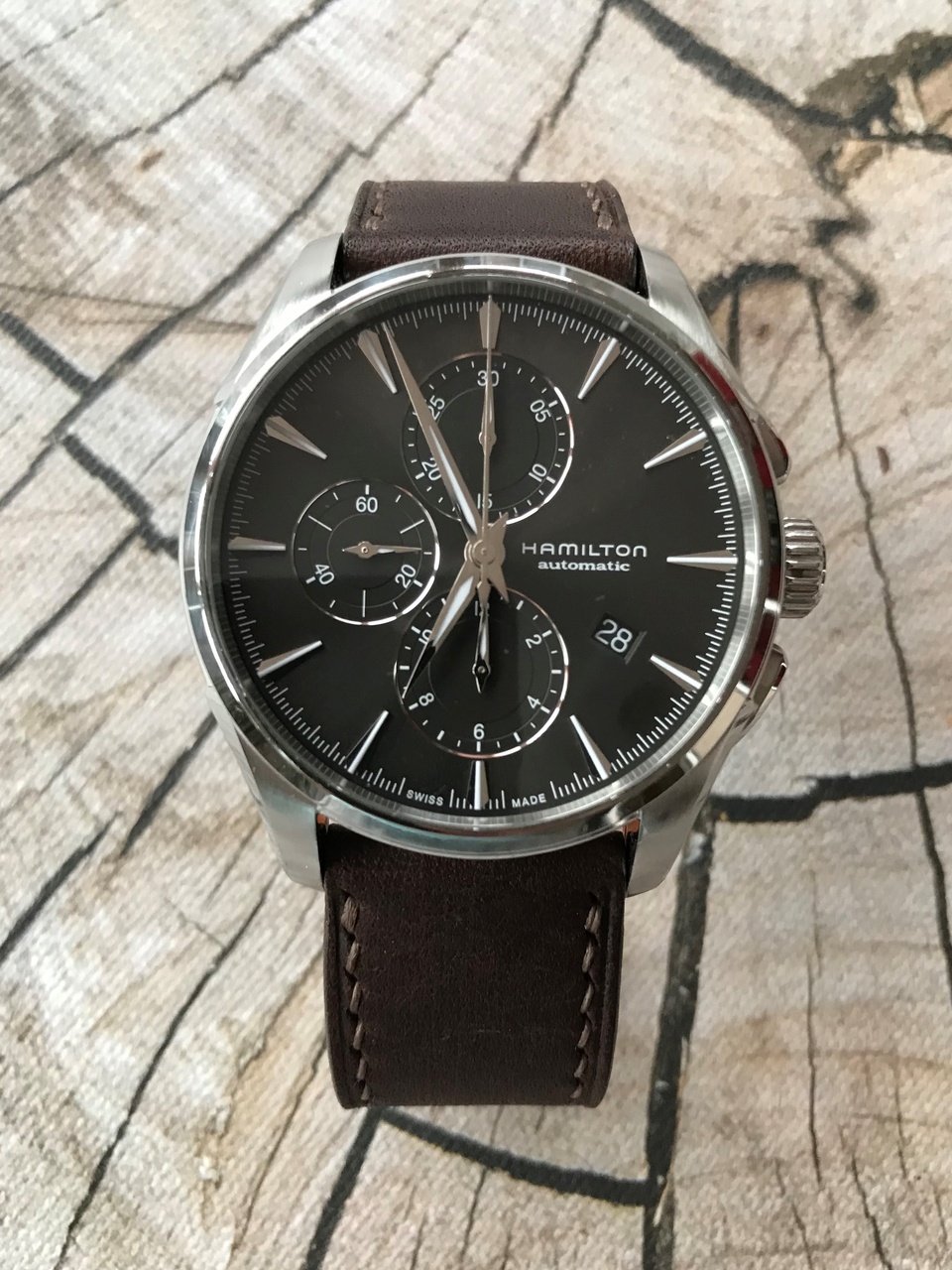 В наличии красивый мужской хронограф Hamilton Jazzmaster Auto Chrono H32586881 в отличном состоянии. В комплекте только часы.