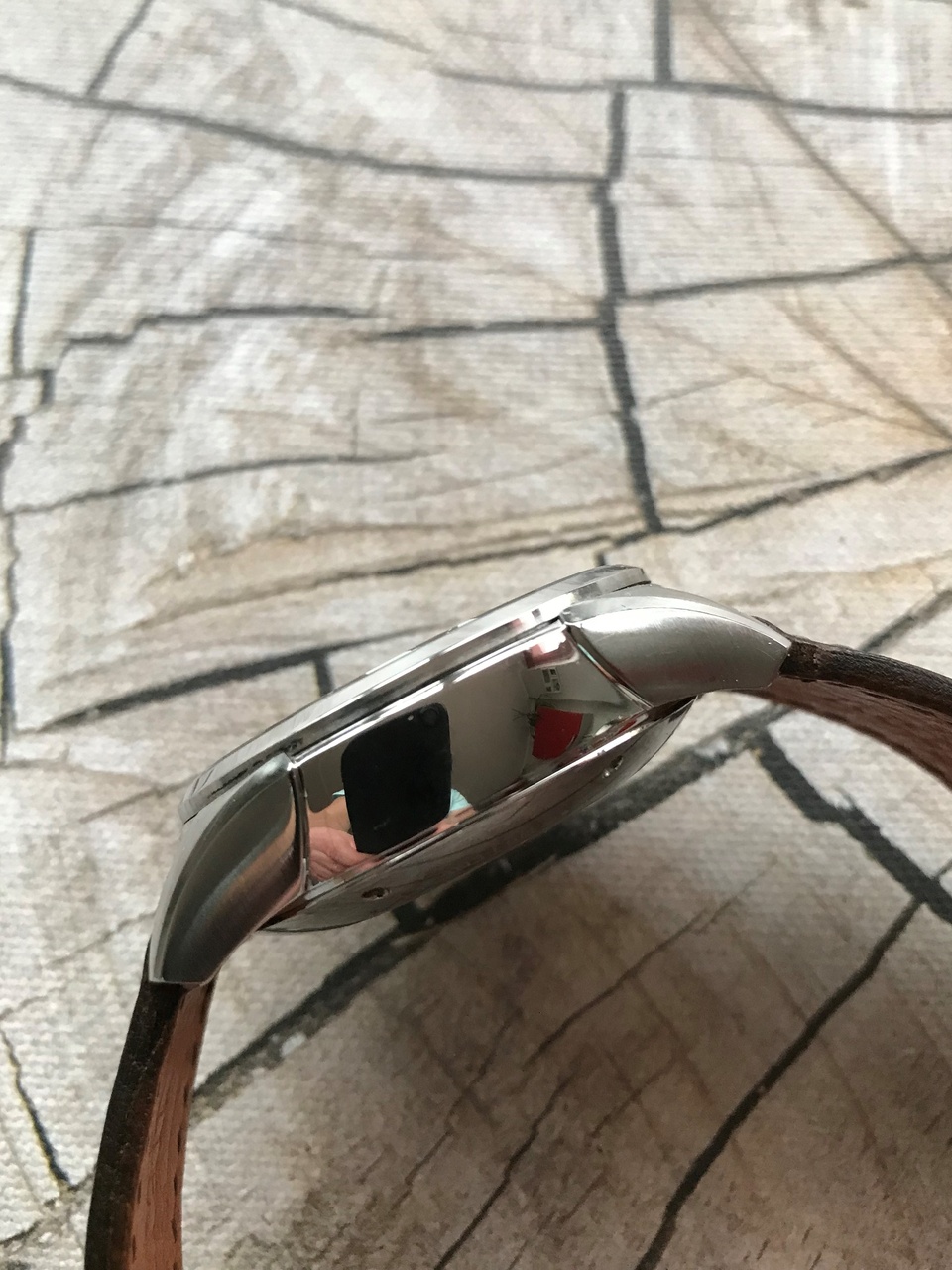 Ремешок: Новый из натуральной кожи теленка ручной работы. Застежка клипса двойного сложения с боковыми кнопками из нержавеющей стали 316L.
