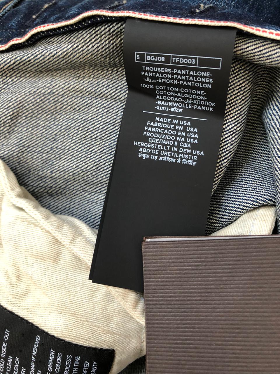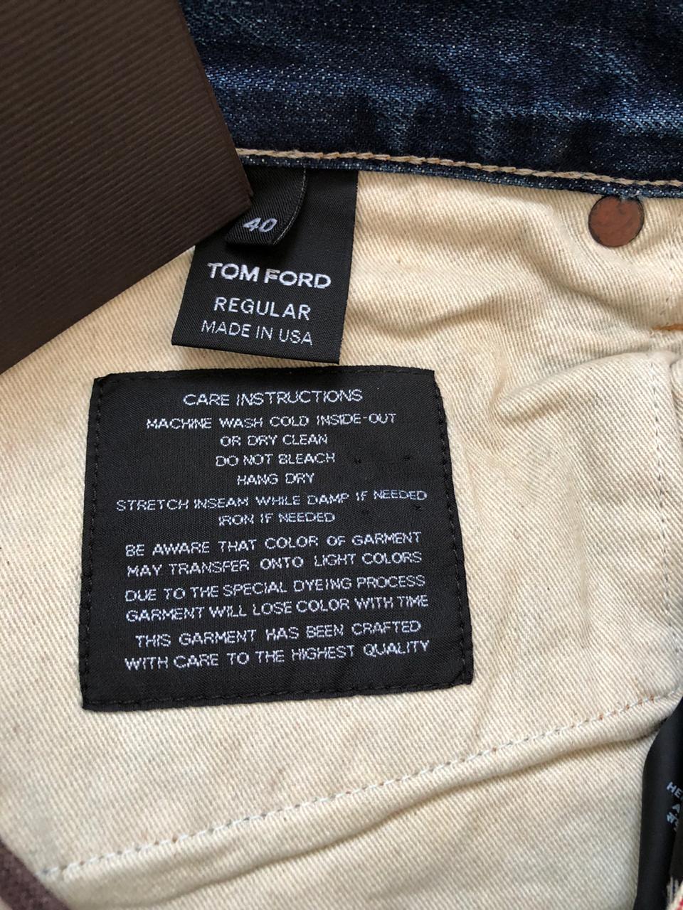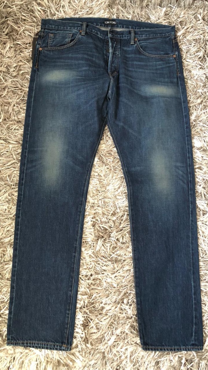 В продаже,новые мужские джинсы от американской люкс-марки TOM FORD.Джинсы прямого кроя изготовлены из высококачественного,мягкого хлопка с искусственно созданными заломами и потёртостями.Имеют контрастную светло-коричневую прострочку,застёжку на брендированные пуговицы-клёпки,сзади на поясе традиционный ярлык с названием бренда,выполненный из жёлтой замши.
