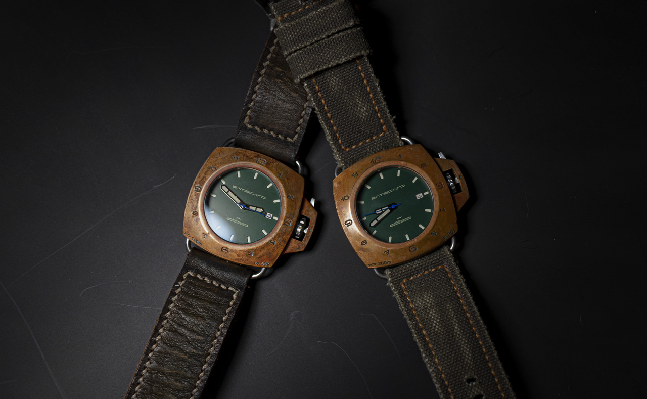 BATISCAFO Quadro45 – винтажные дизайнерские часы в стиле military в массивном бронзовом корпусе. Лимитированная серия 300 единиц.