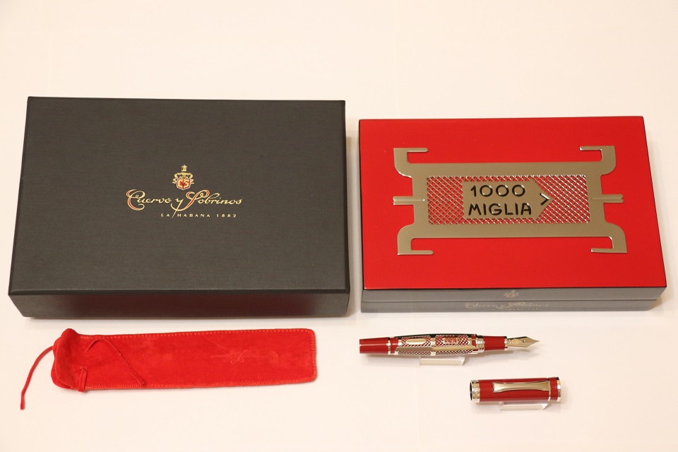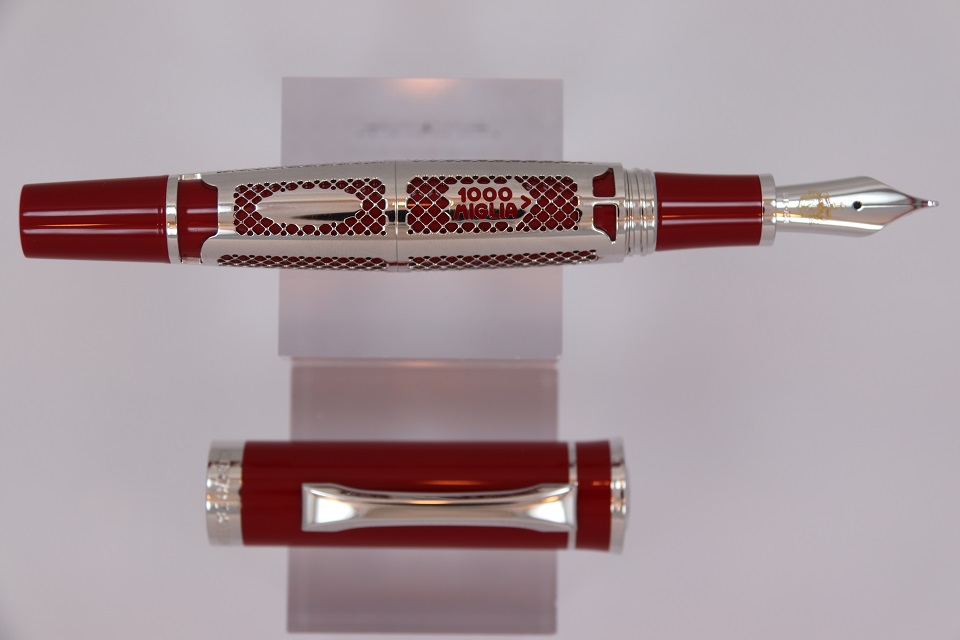 Коллекция пишущих инструментов Mille Miglia состоит из двух моделей - перьевой ручки и роллера. Всего выпущено 609 перьевых ручек и 1000 роллеров и их общее количество составляет 1609 эксклюзивных экземпляров, как память о 1609 километрах пройденными автомобилями в гонке Mille Miglia.