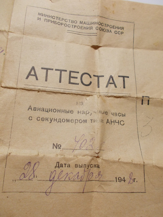 При этом у часов с номером «402», аттестат от которых можно найти в интернете, отчетливо видна дата выпуска «28 декабря 1948 года».