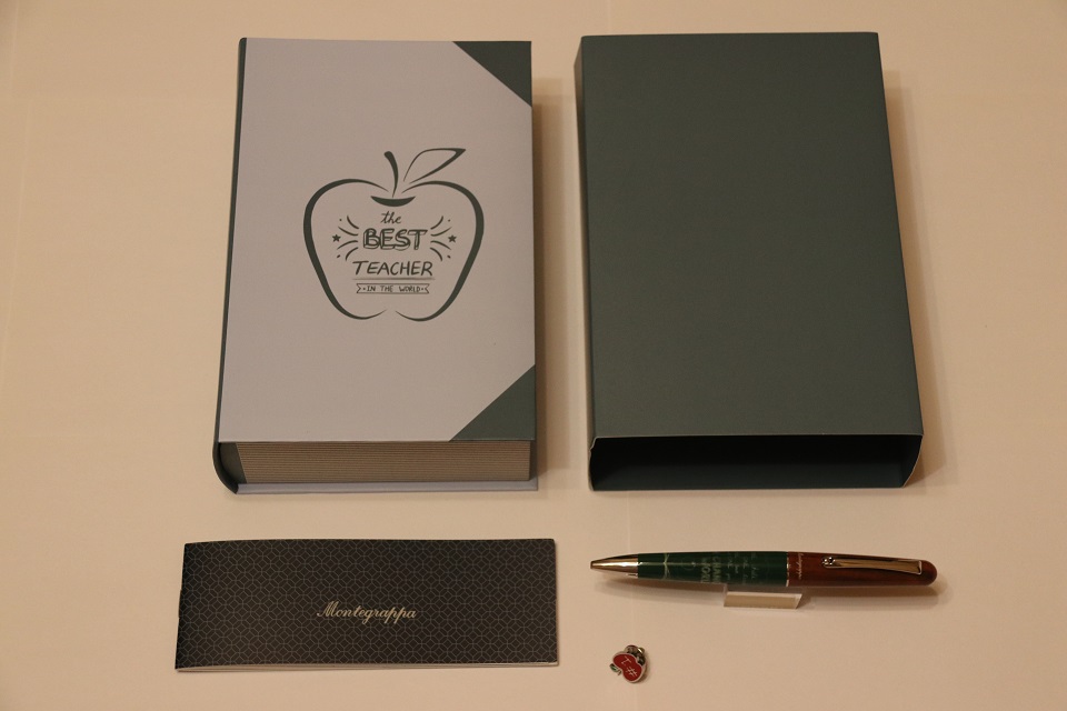 Ручка новой коллекции Teachers Pen от Montegrappa - знак признательности тем, кто так много делает для формирования будущего наших детей. Такой подарок должен быть более чем символом: внутри футляра в форме книги послание надежды и символ благодарности, выраженный в пишущем инструменте. Подарок, который не перестает радовать, адресован лучшему учителю в мире и выпущен в футляре, напоминающем книгу в ручном переплете. Внутри находится пишущий инструмент профессионального уровня, выполненный в винтажном стиле Баухаус. В новой ручке итальянского производства используется атмосфера классной комнаты и мотивы яблок, чтобы преподнести учителям значительную и прочную благодарность. Хотя традиция дарить яблоки учителям, возможно, в последние годы прекратилась, фрукты остаются популярным мотивом для всех видов безделушек, которые дарят в таких случаях, как окончание учебного года, выпускной и Национальный день учителя. Ручка не только доставляет удовольствие от письма, ожидаемое от венецианской ручной работы, она даже использует силуэт, который был популярен в классах по всей Италии более 80 лет.