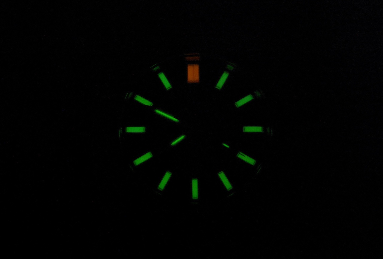 В данных часах установлены тритиевые микротрубочки T100 в количестве 16 штук, очень яркое и красивое свечение меток и стрелок! Если у вас были часы с тригалайтами Т25, разницу увидите сразу))