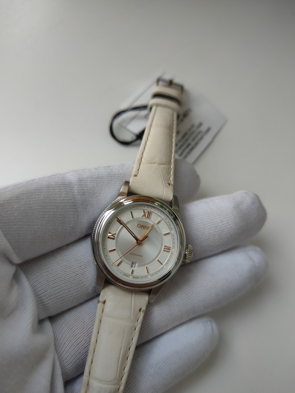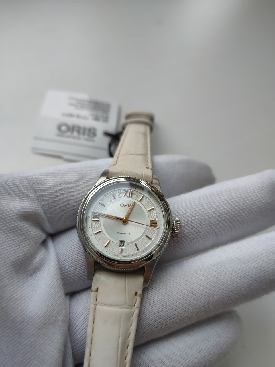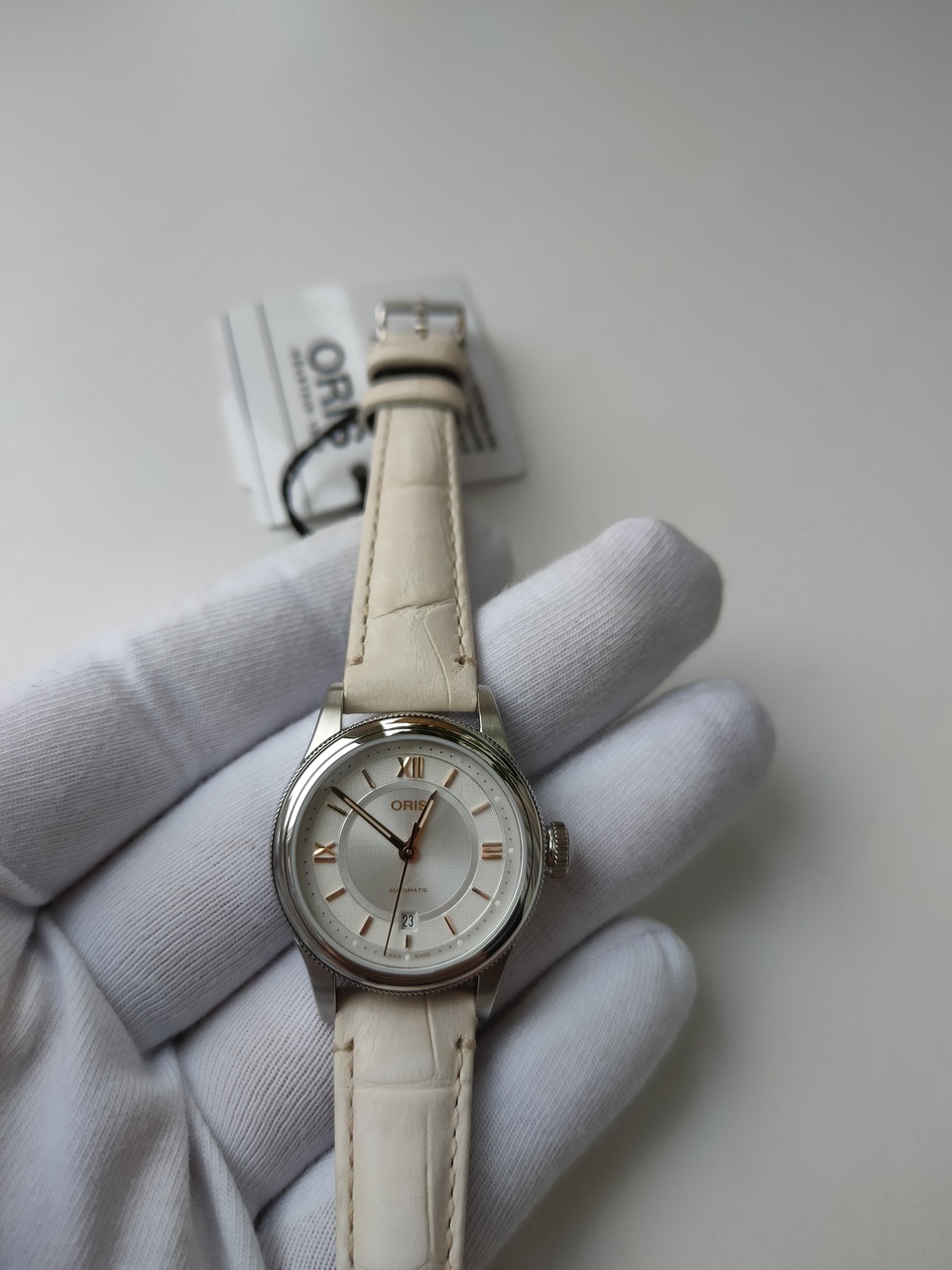 Предлагаю к продаже отличные часы от уважаемого швейцарского производителя не нуждающегося в представлении. Думаю, что у большинства любителей часов марка Oris ассоциируется с надежностью и безупречным качеством исполнения. Цифер шикарен: красивый серебристый цвет, гильоше, золотые стрелки, накладные метки. Чтобы понять насколько хороши эти часы - их надо увидеть в живую