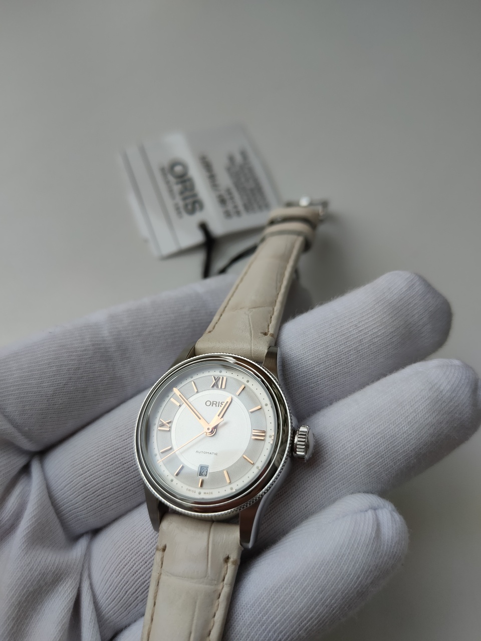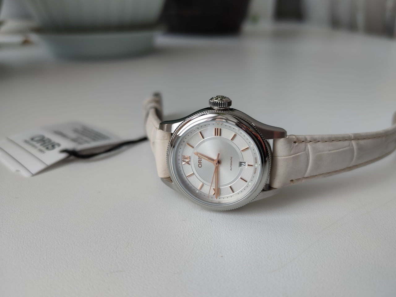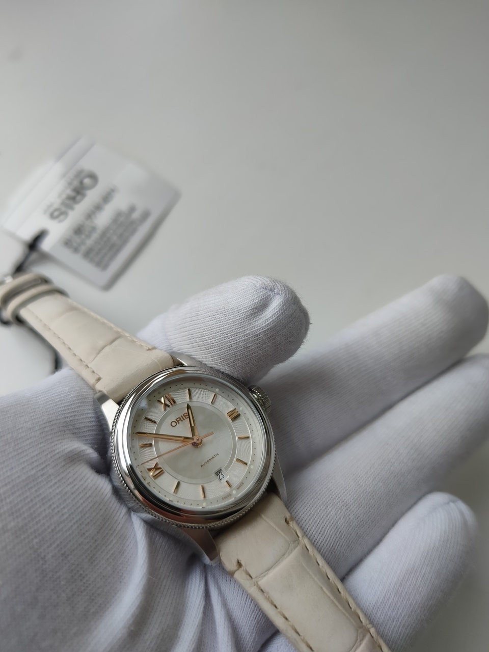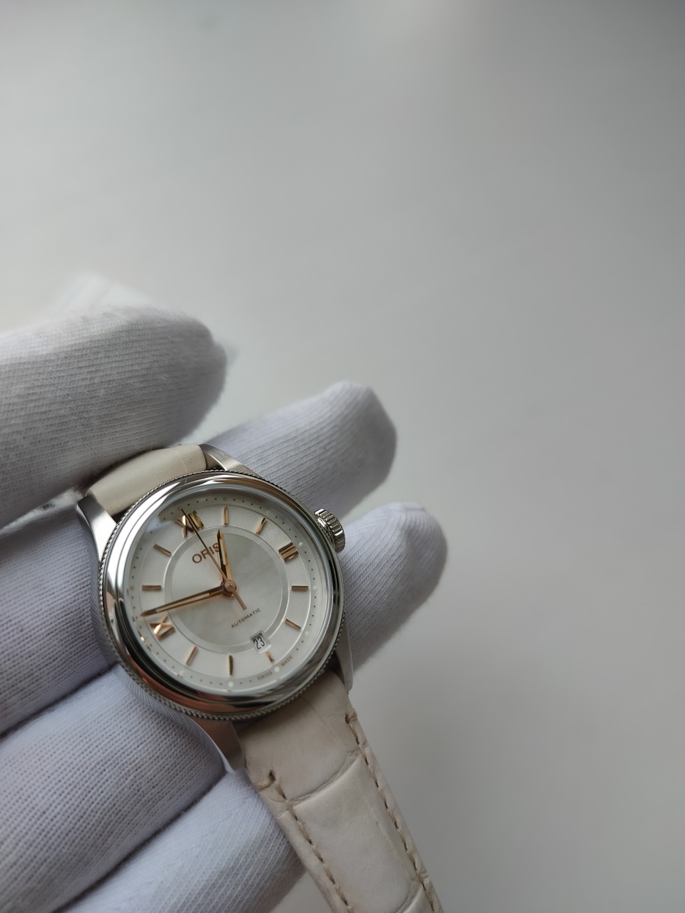Предлагаю к продаже отличные часы от уважаемого швейцарского производителя не нуждающегося в представлении. Думаю, что у большинства любителей часов марка Oris ассоциируется с надежностью и безупречным качеством исполнения. Цифер шикарен: красивый серебристый цвет, гильоше, золотые стрелки, накладные метки. Чтобы понять насколько хороши эти часы - их надо увидеть в живую