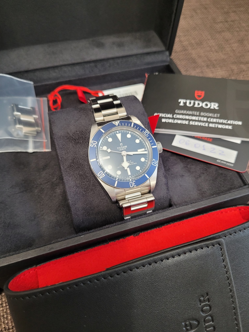 Предлагаю к продаже уважаемым форумчанам отличнейшие Tudor, которые не нуждаются в дополнительной рекламе. Куплены в январе 2022 в ДЛТ. На руке были крайне мало, буквально считанные разы. Сейчас снова сделал упор на спорт, поэтому всё больше времени в смарт-часах. Плюс появилась новая хотелка, поэтому продаю. Видимых царапин или чего-то такого нет, по крайней мере разглядеть не смог. Часы не ронялись, не ударялись, не вскрывались. Мало чем отличаются от новых, тем более, что дилер плёнки при продаже снимает.