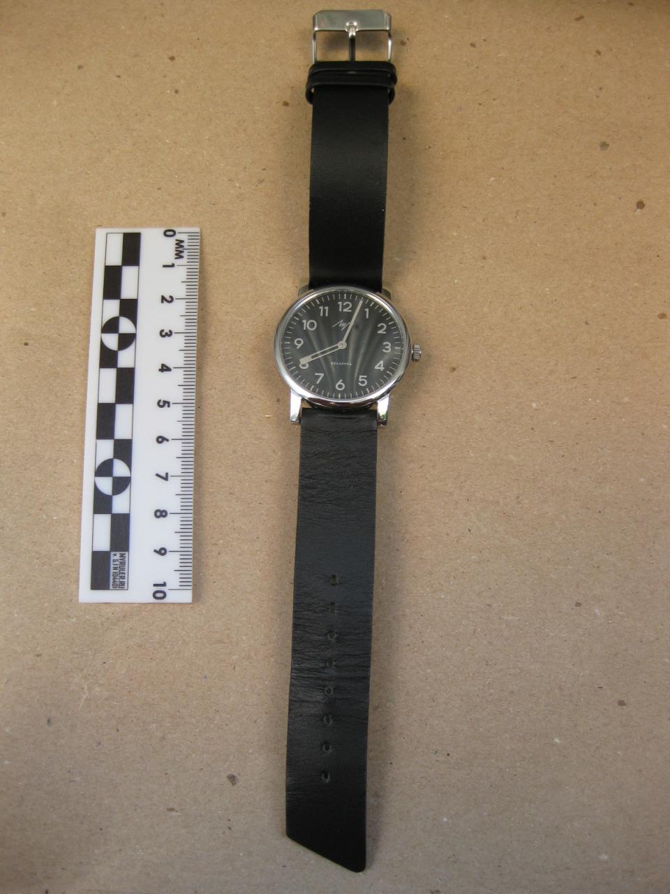 Корпус - нерж.сталь, водозащита 3 атм, стекло минеральное выпуклое, ремешок кожаный.