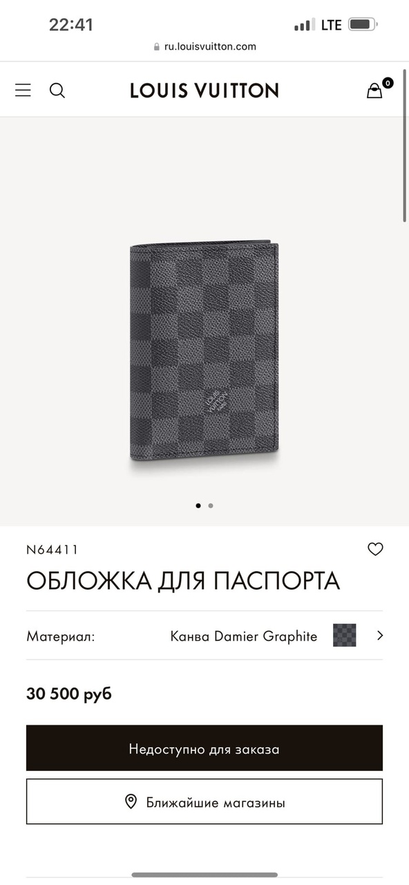 Обложка для паспорта LOUIS VUITTON Damier Graphite