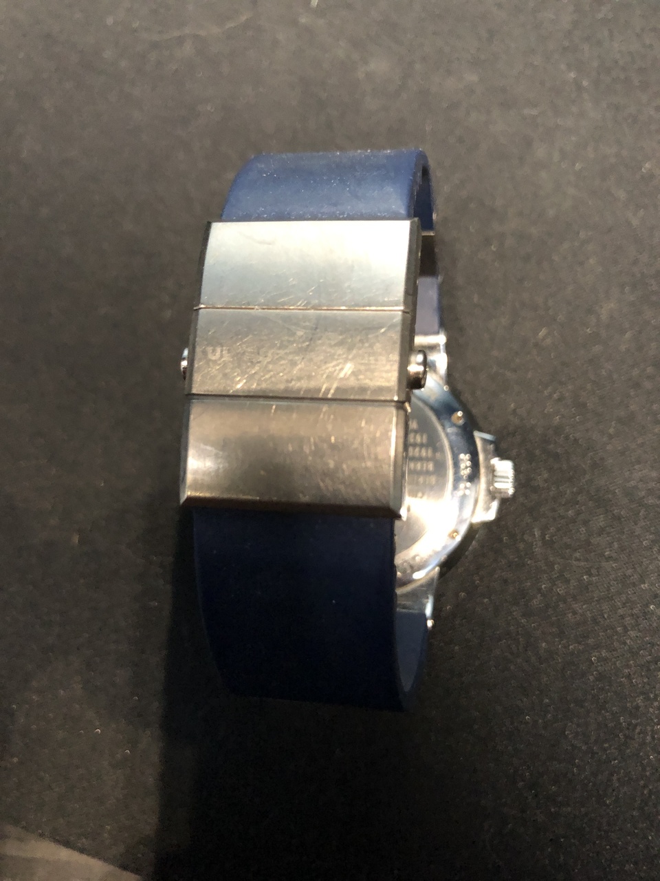 Браслет каучуковый оригинальный, уменьшен, есть следы использования. На бакле надпись бренда стёрлась.