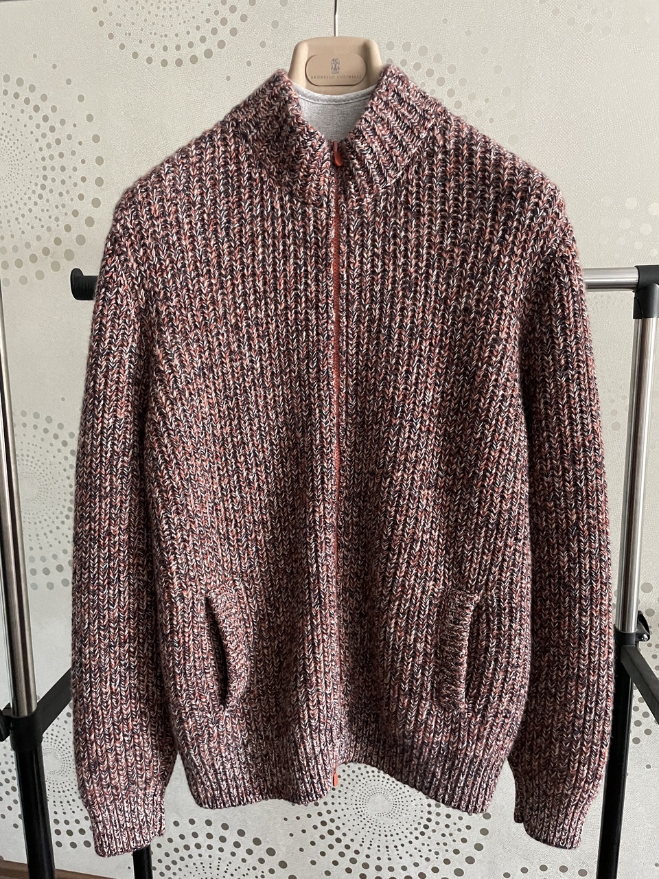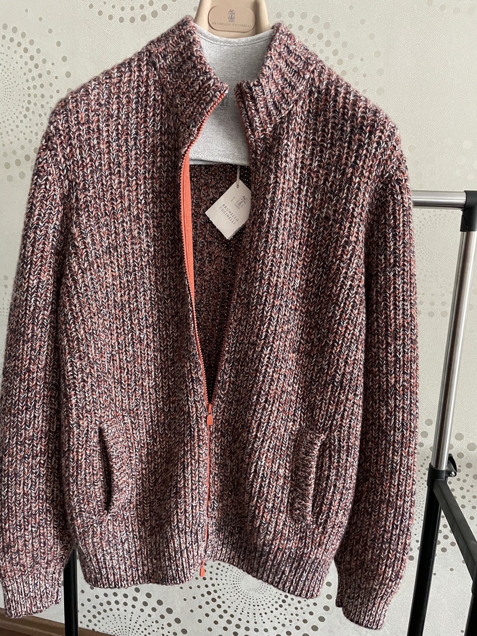 BRUNELLO CUCINELLI новый мужской меланжевый кардиган с высоким воротом на молнии /100% кашемир/ (50 size)