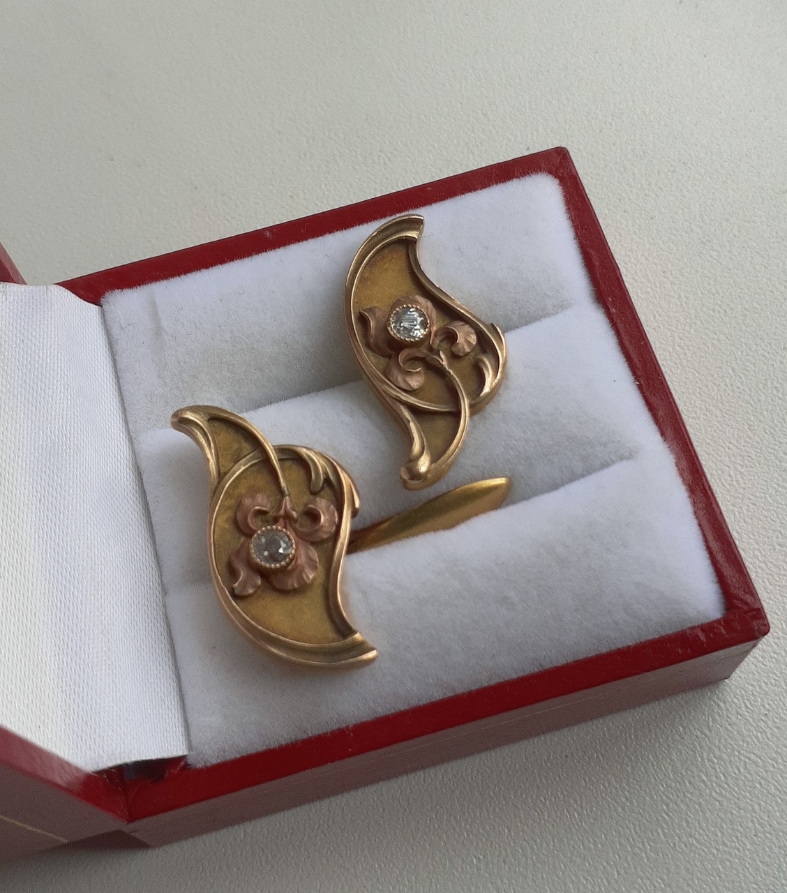 Продам запонки нач. ХХв в стиле модерн, золото и брильянты, с историей в Мск.