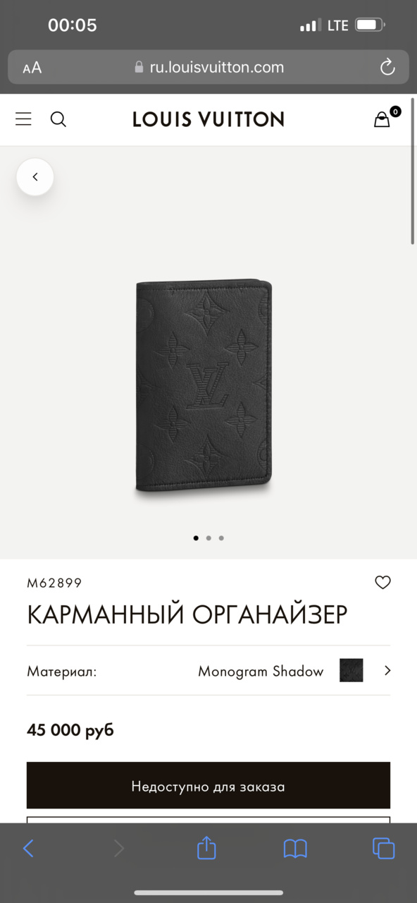Карманный органайзер LOUIS VUITTON Monogram Shadow