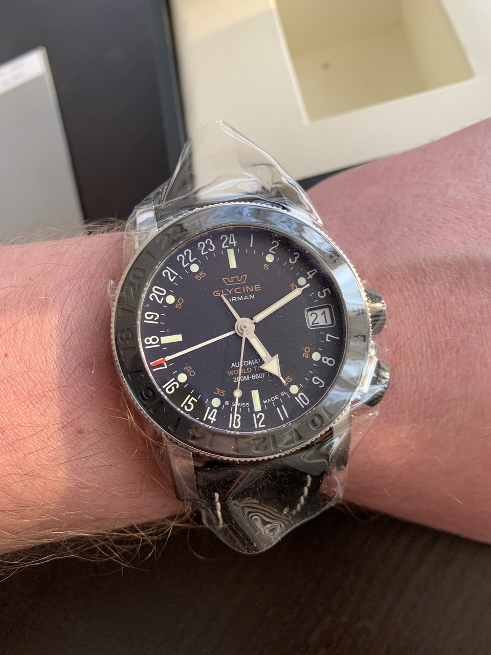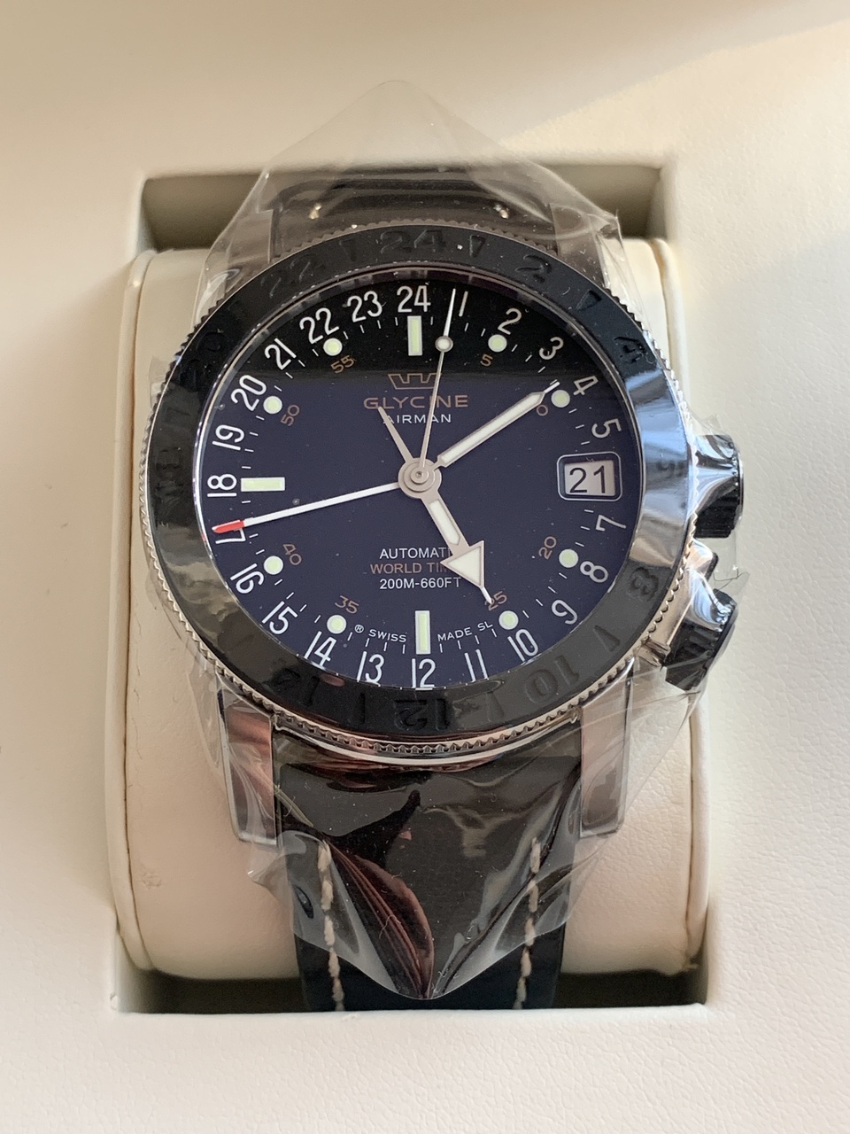 Простые, но довольно интересные. Три часовых пояса. 24-х часовая шкала, при желании можно воспринимать как основное время. Мягкий ремешок.