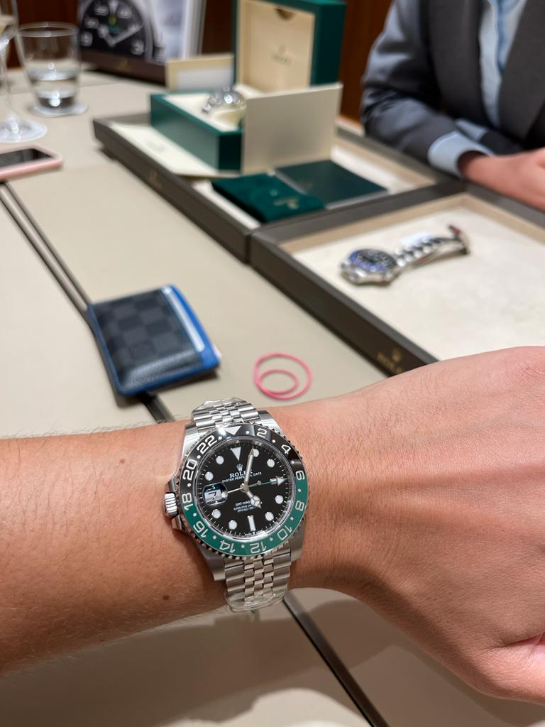 В бутике - часик приятного общения о ситуации в целом на рынке, ну и конечно же примерка будущих покупок. Померил немного раритета - новый GMT Master II (или как его окрестили - спрайт), Sea Dweller 43mm.