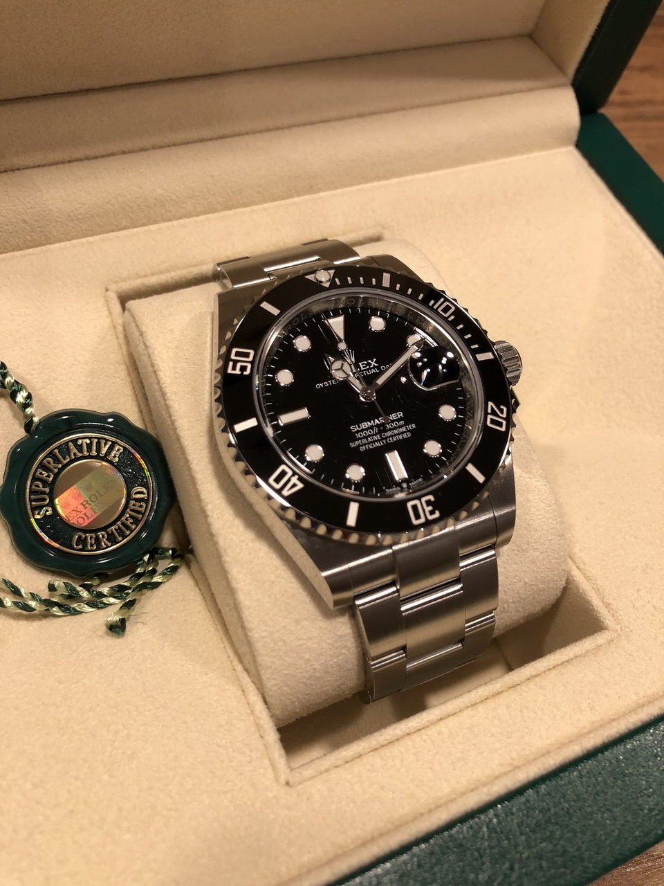 В продаже черный Rolex Submariner Date, референс 126610LN. Новая модель с диаметром корпуса 41 мм. и обновленным калибром 3235 с запасом хода 70 часов.