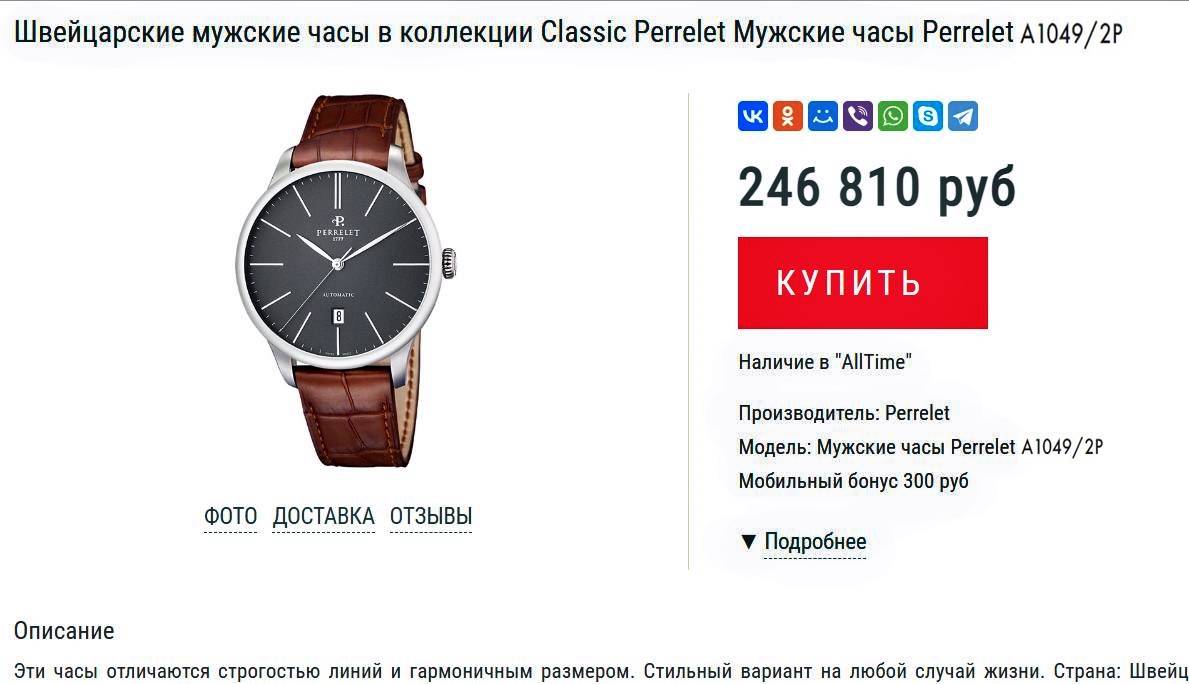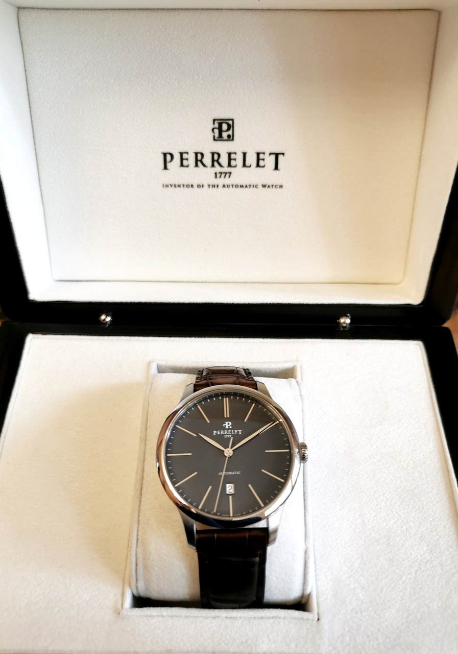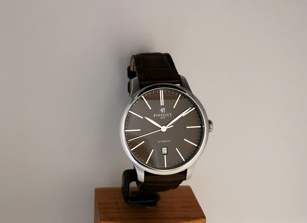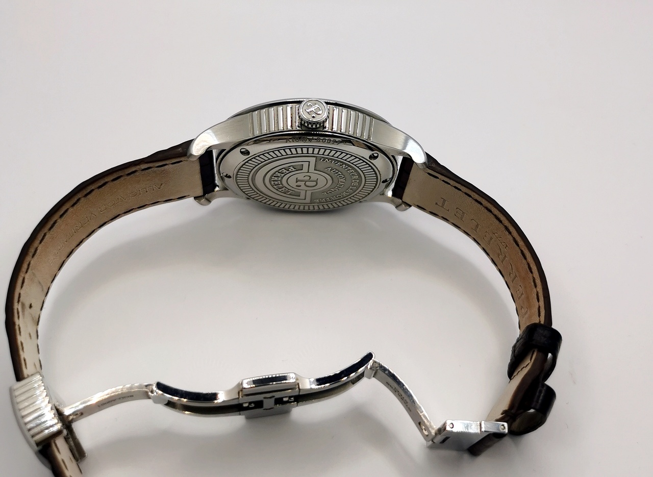 Мужские часы Perrelet First Class заметно отличаются от остальных моделей этого семейства. Отличия заключаются в более классическом и утонченном исполнении. Строгий дизайн подчеркивает их сдержанный и целостный характер. Изысканный аксессуар выполнен в корпусе из нержавеющей стали размером 42,5 мм и толщиной 10,6 мм. Тонкие серебристые стрелочки отлично смотрятся на графитовом фоне циферблата в сочетании с ремешком из кожи аллигатора тёмно-коричневого цвета. Часы с механическим калибром и с автоподзаводом. Вся красота часов надежно скрыта от механических повреждений, влаги, пыли и прочих неблагоприятных условий под сапфировым стеклом и прочной стальной задней крышкой. Изящный образ эксклюзивных часов дополняет раскладывающаяся стальная застежка и кожаный ремешок из аллигатора.