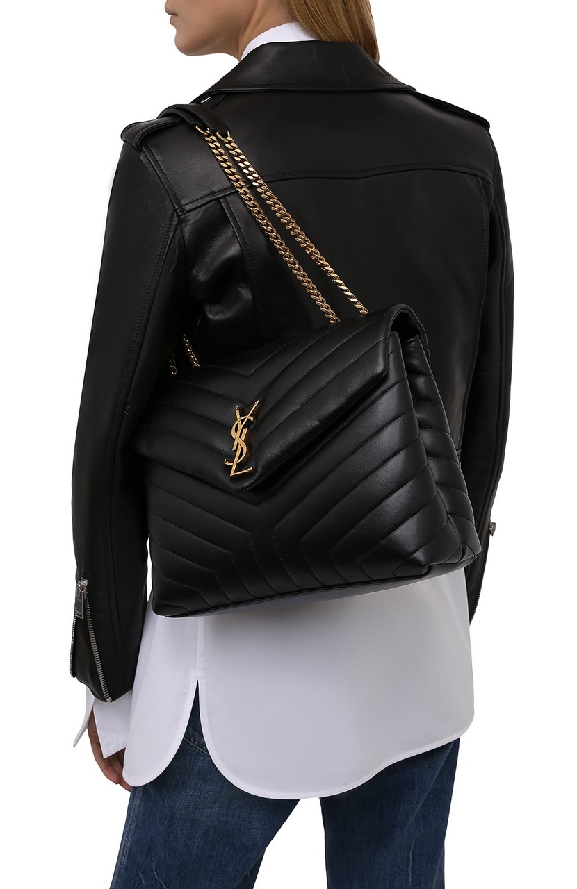 SAINT LAURENT шикарная женская сумка, черная кожа!