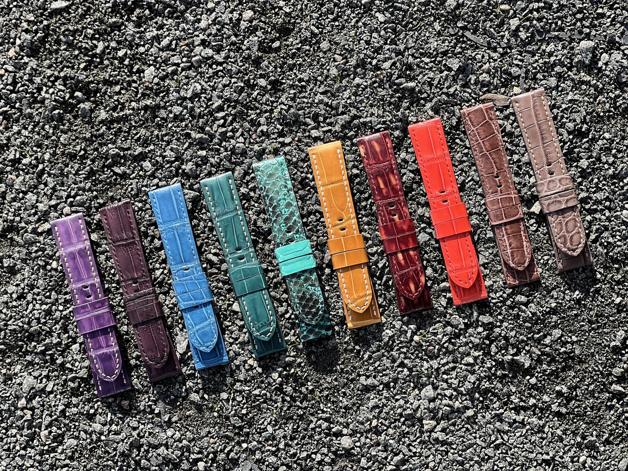 Цвета очень красивые, спокойные. Рисунок кожи крайне интересный и необычный для крокодиловых ремней. Идеальные осенние цвета.