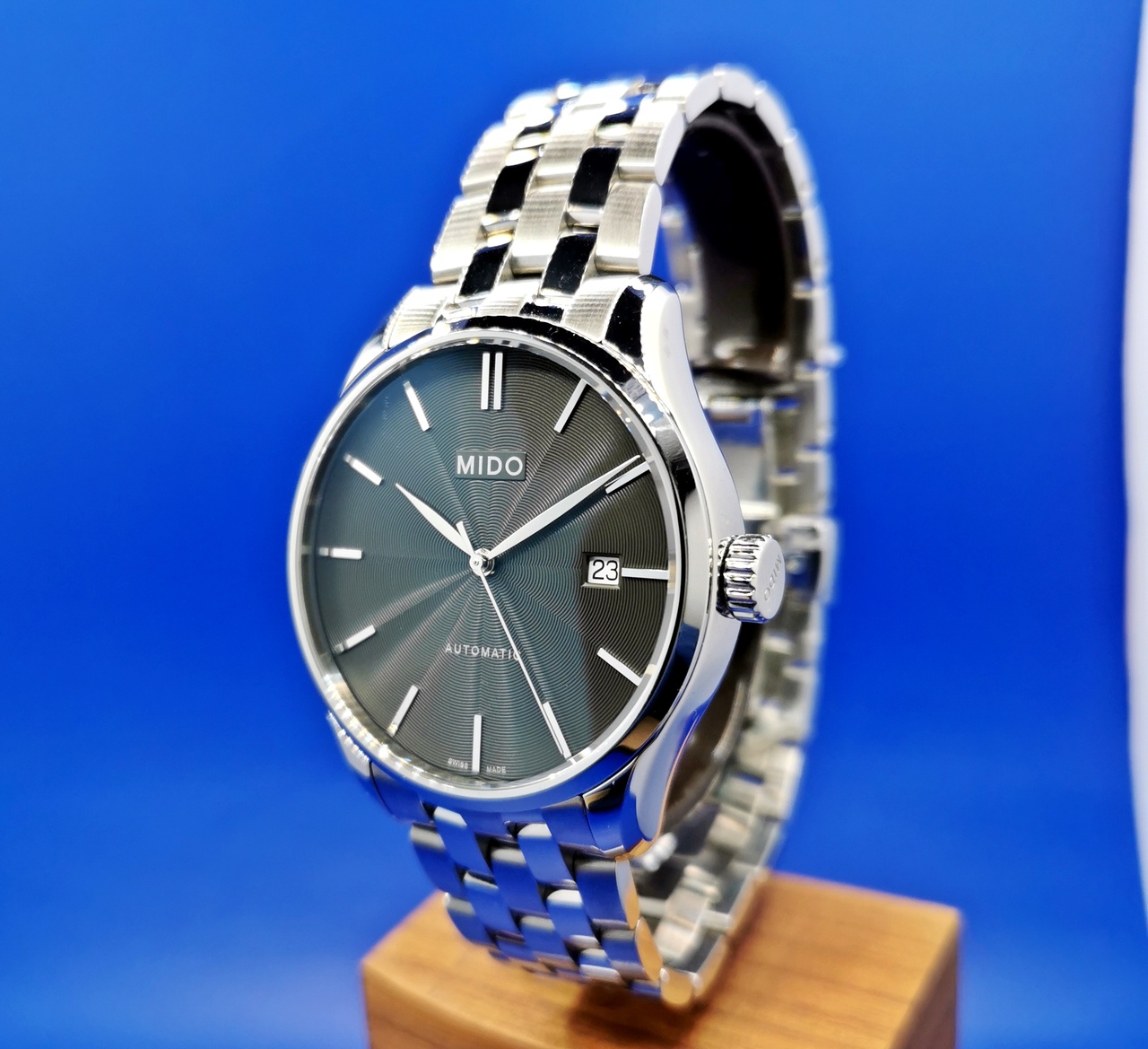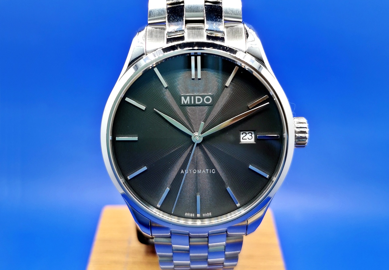 В продаже шикарная мужская классика в стильном исполнении от MIDO модель Belluna II. Полированные накладные индексы. Циферблат выполнен с расходящимся гильоше волнами.
