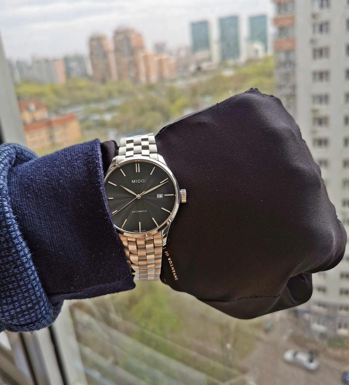 Циферблат: Антрацитовый циферблат с изысканными структурами, серебристые индексы, полированные серебряные стрелки, окошко для даты на 3 часа