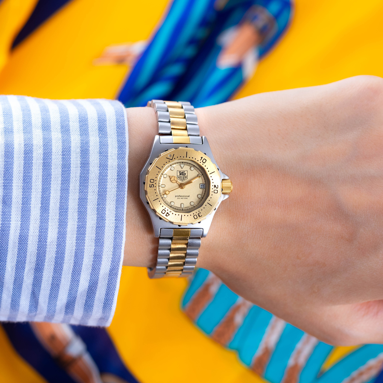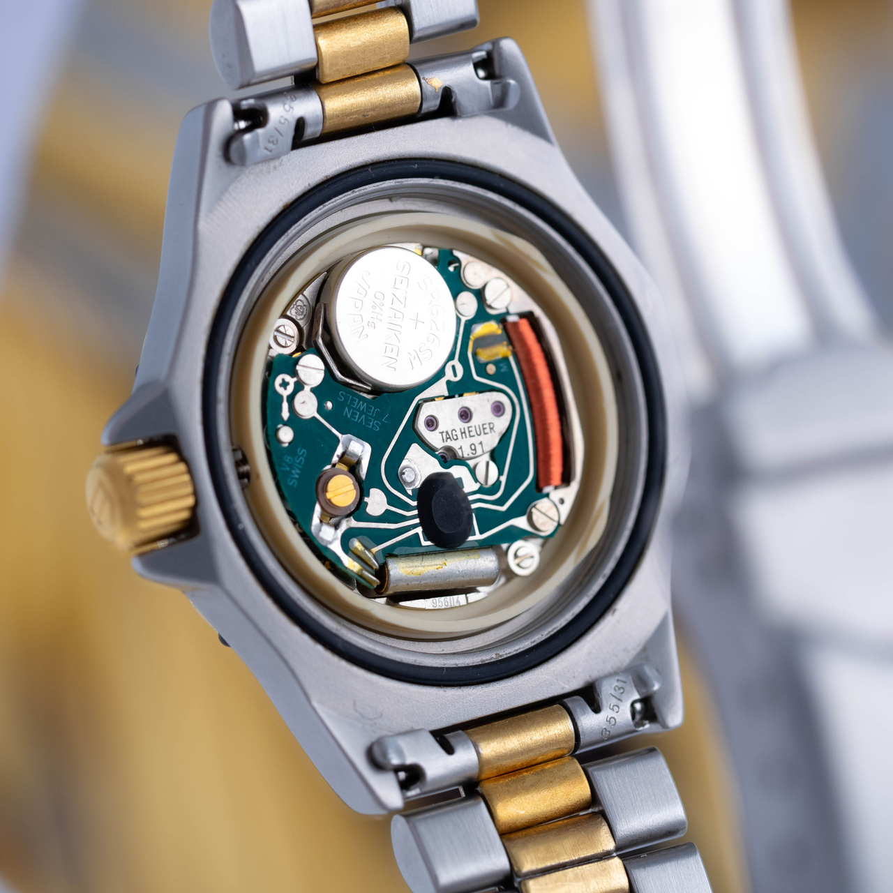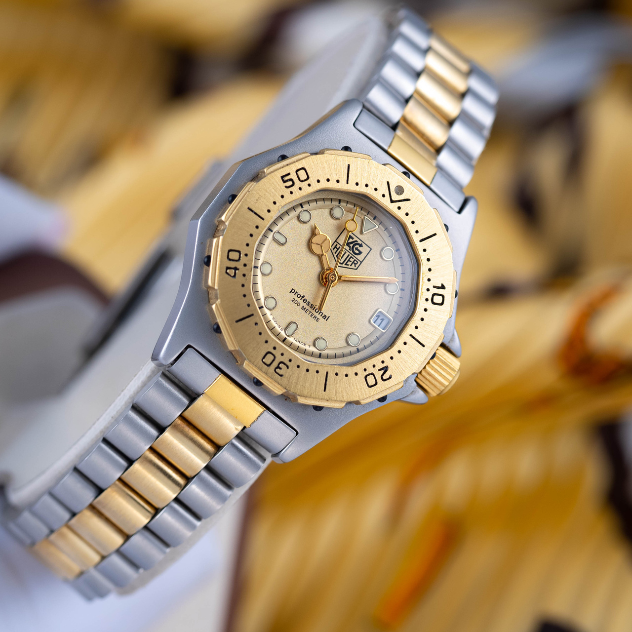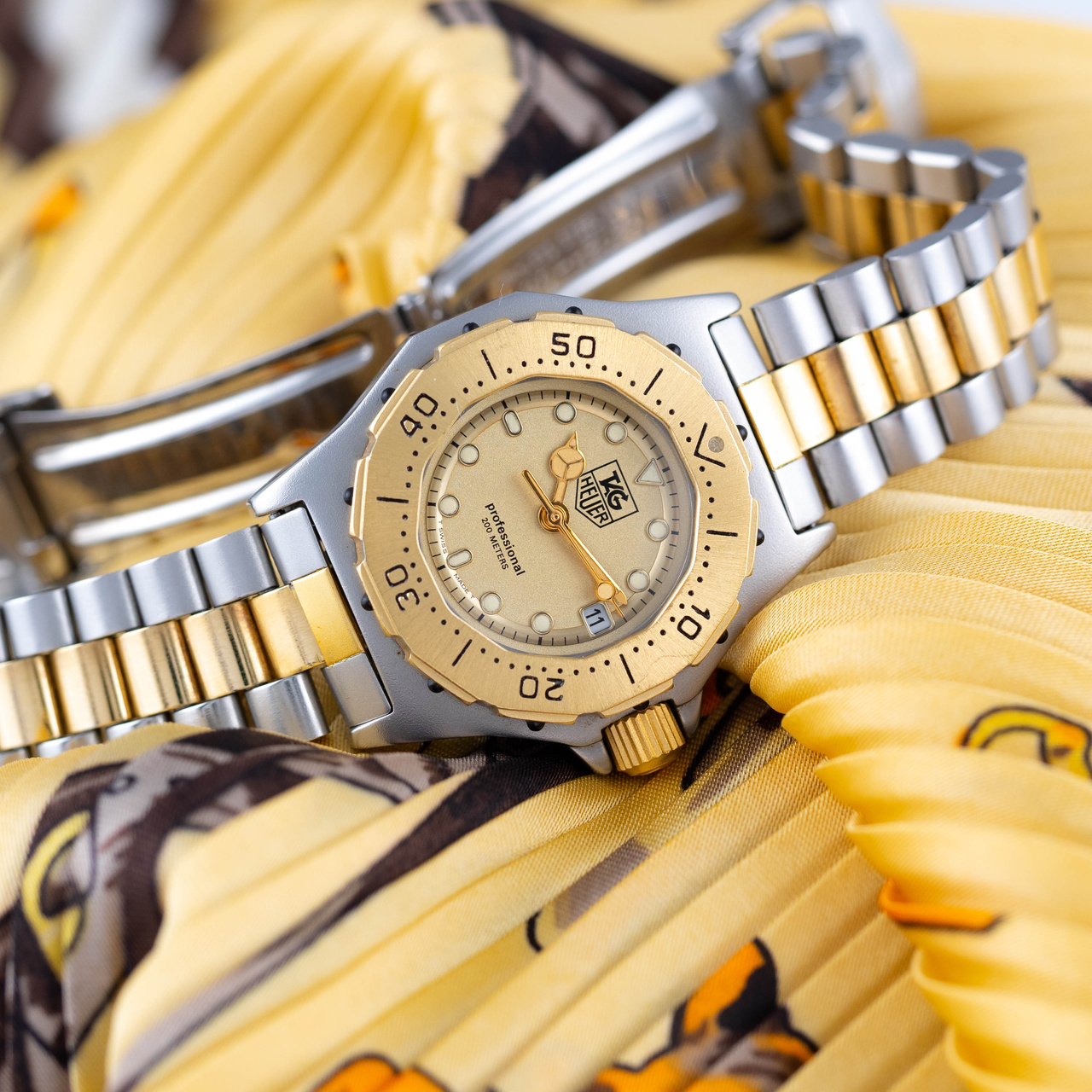 TAG Heuer 3000 series Professional - превосходное изделие швейцарских мастеров-часовщиков TAG Heuer. Для тех, кто этого не знает, дом был основан в 1860 году Эдуардом Хойером в Сент-Имье, Швейцария,а в 1985 произошло слияние с холдингом TAG,после чего компания получила название TAG Heuer. В данной модели часов по-прежнему использовались некоторые ключевые элементы, характерные стилю часов для дайвинга предыдущих десятилетий, а именно: односторонне крутящийся безель, люминесцентные метки на циферблате золотого цвета, завинчивающаяся заводная головка и стрелка в стиле Mercedes-Benz.