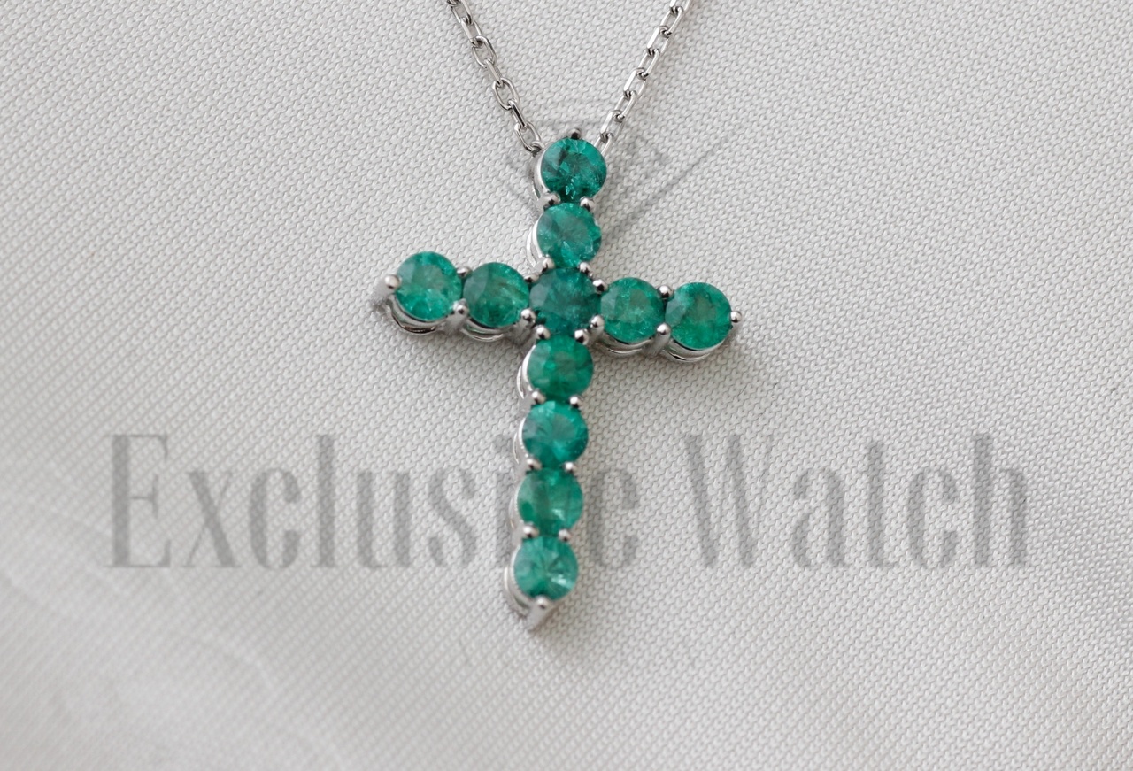 КРЕСТ С ИЗУМРУДАМИ 1,25 кр. В БЕЛОМ ЗОЛОТЕ 750