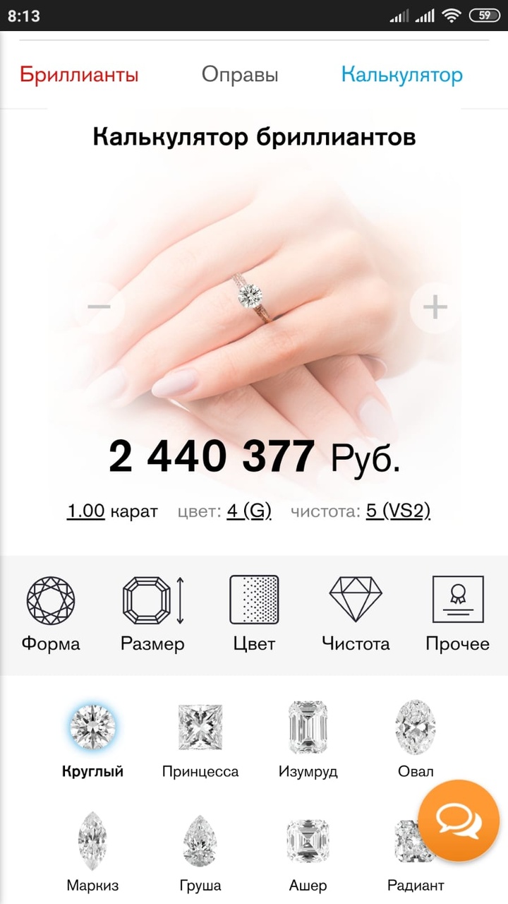Кольцо с бриллиантом 1,02 ct. (Сертификат МГУ)