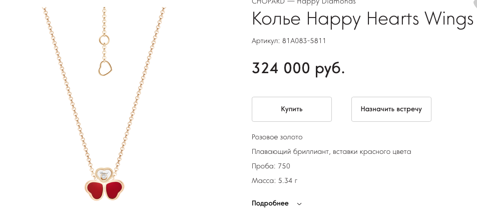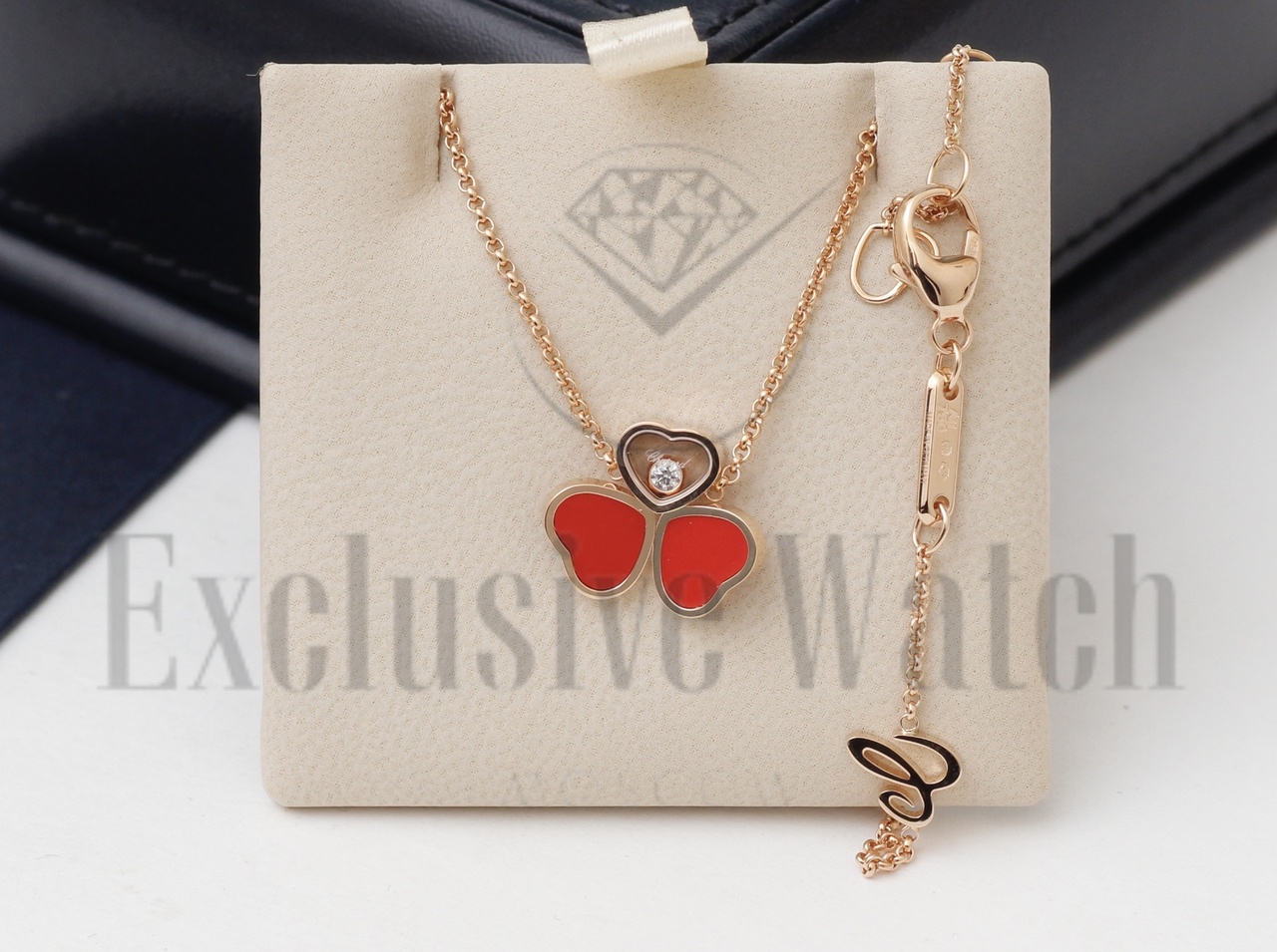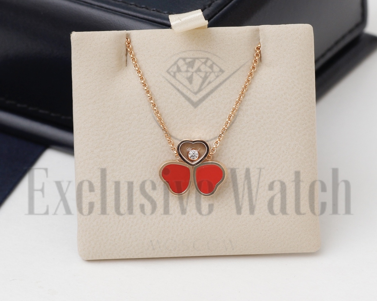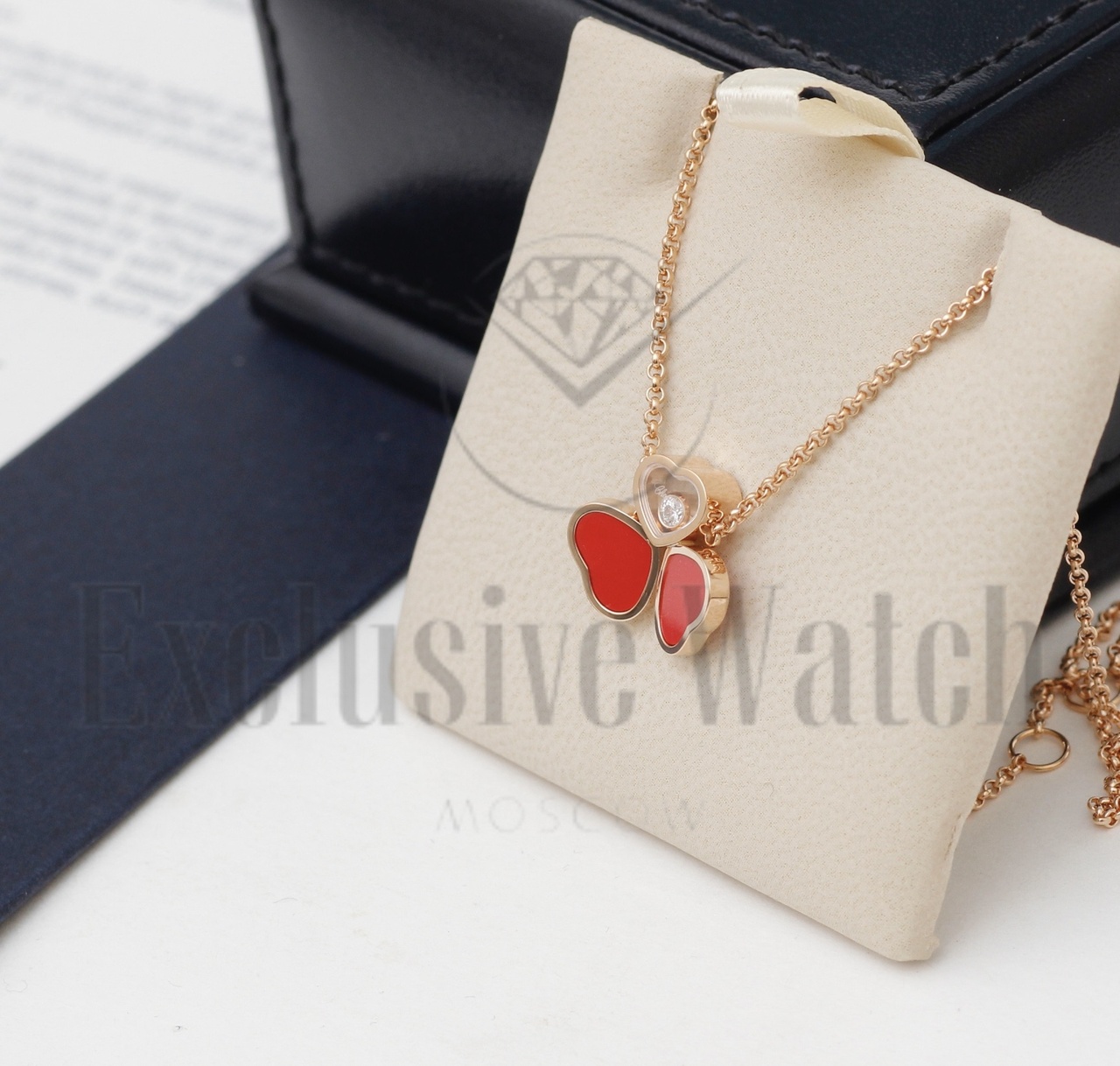 - 40 % КОЛЬЕ *CHOPARD* HAPPY DIAMONDS HAPPY HEARTS WINGS С ПЛАВАЮЩИМ БРИЛЛИАНТОМ И ВСТАВКОЙ КРАСНОГО ЦВЕТА