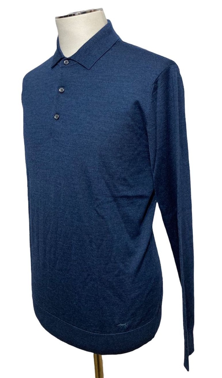 Paul&shark - поло д. рукав - шёлк/шерсть - синий - L