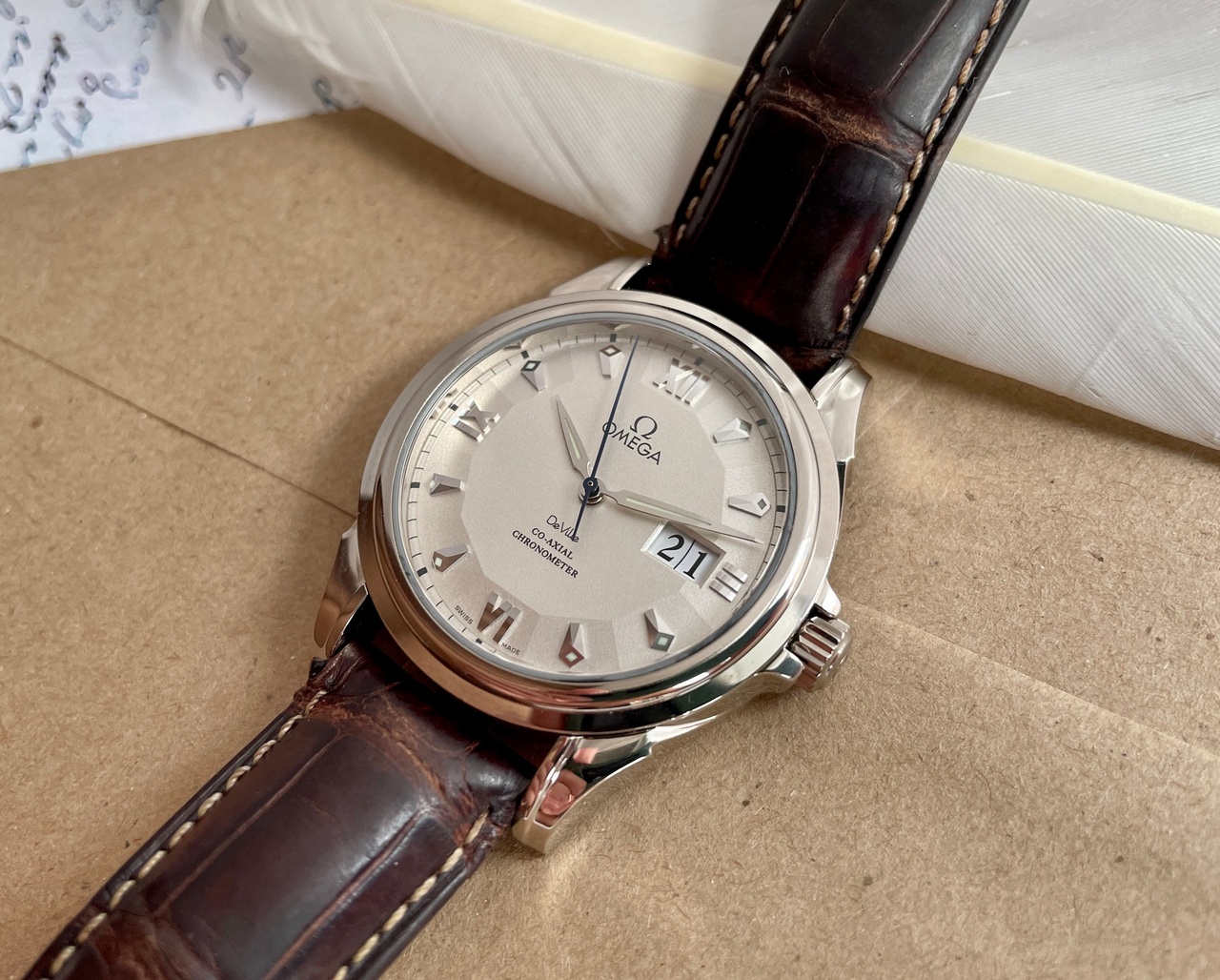 Невероятно шикарная модель от #Omega , выполненная в корпусе 39мм из белого золота 18 карат.