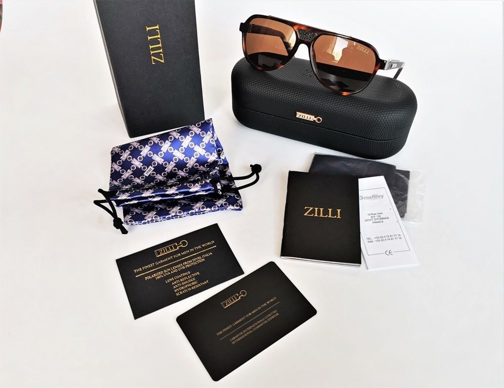 ZILLI / Acetate, Leather, Titanium, Polarized, 100% UV / Солнцезащитные очки / Made in FRANCE