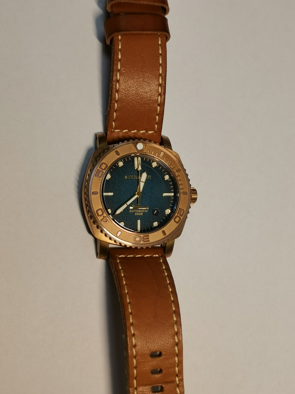 У часов в бронзовом корпусе есть своя особенная эстетика. Это часы не на каждый день. Бронза материал иногда даже капризный. Патина, которая образуется на поверхности может как украсить часы, так и обезобразить. Слой патины образующейся во влажных условиях(гидрокарбонат меди зеленого цвета), к сожалению, имеет свойство стираться с поверхности металла, и пачкать кожу и одежду.(по моим наблюдениям) А, при правильном хранении часов в коробочке, патина ложится медленно и придает часам слегка «загорелый» вид. В любом случае, часы в бронзовом корпусе это повод для экспериментов со своим образом.