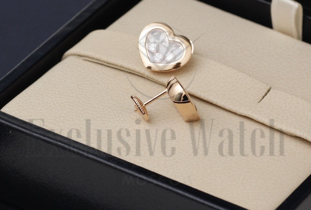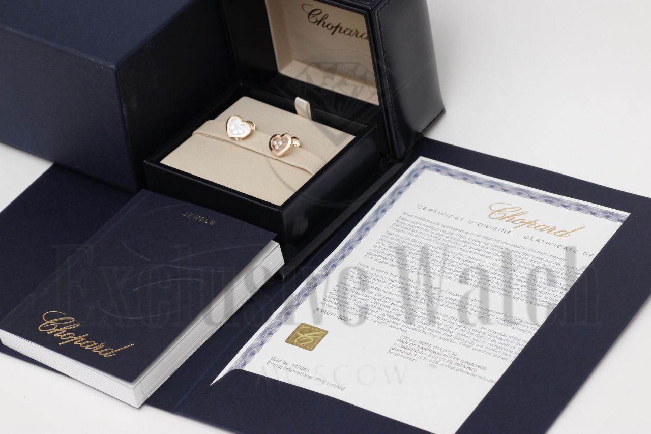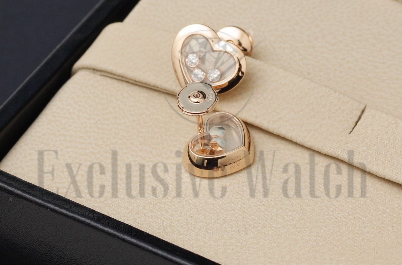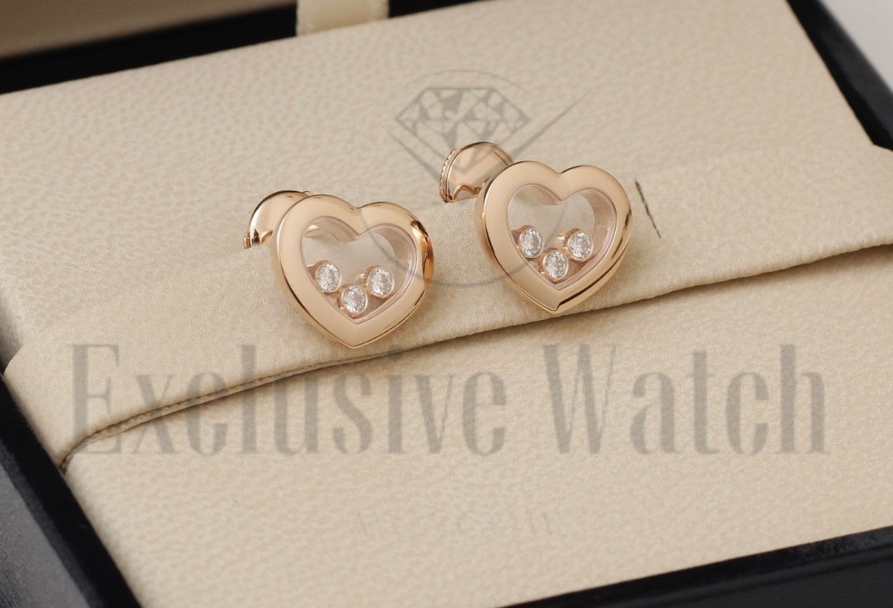 СЕРЬГИ * CHOPARD * HAPPY DIAMONDS ICONS HEART 83A611 - 5001 / РОЗОВОЕ ЗОЛОТО 18К / 3 ПЛАВАЮЩИХ БРИЛЛИАНТА