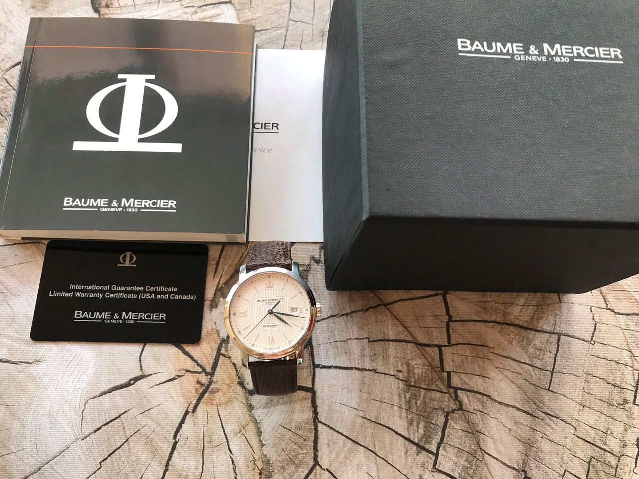 В наличии элегантные мужские часы Baume & Mercier линейки Classima, реф: M0A08791 в отличном состоянии. Полный комплект: часы, внешняя коробка, шкатулка, инструкция, гарантийная карта.