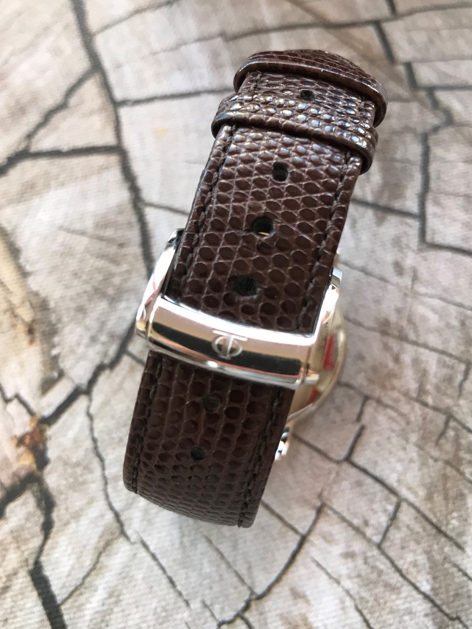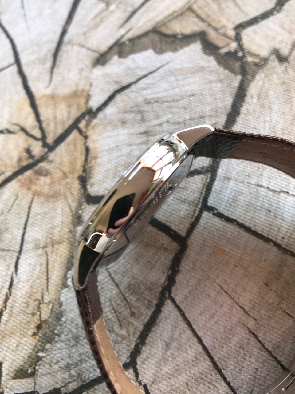 Ремешок: Натуральная кожа (не родной). Застежка тройного сложения типа «бабочка» из нержавеющей стали 316L.