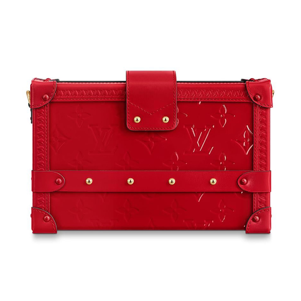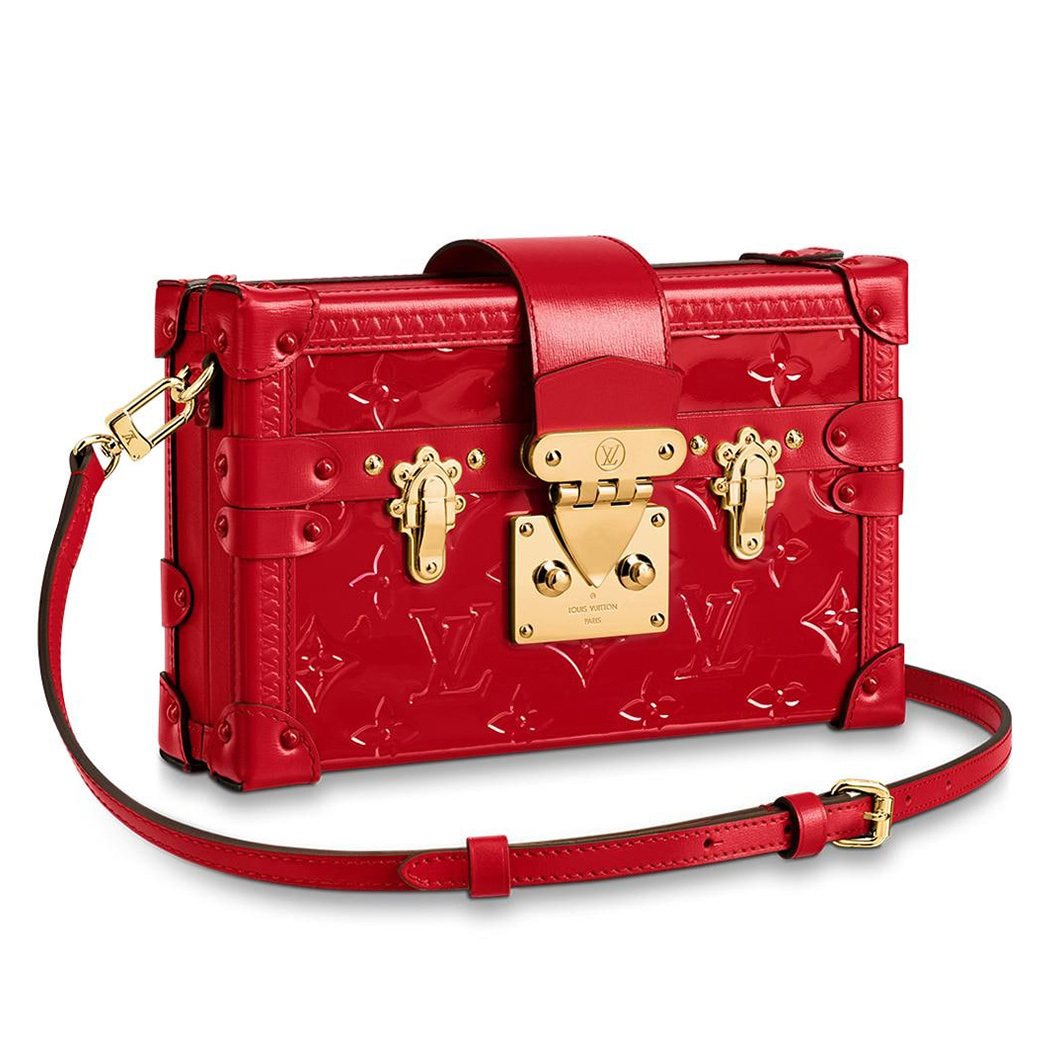 "Сумка Petite Malle - легендарный миниатюрный сундук - великолепно сочетает высокое мастерство Louis Vuitton с дерзким и эффектным стилем. Модель воплощает в себе все наследие искусства изготовления сундуков Дома. Новая эффектная версия сумки Petite Malle представлена в лакированной коже Mongram Vernis. Эта неподвластная времени модель, ставшая новой классикой Дома Louis Vuitton, в шикарной коже Vernis идеально подходит чтобы стать украшением нарядного дневного или вечернего ансамбля. Съёмный регулируемый плечевой ремень позволяет носить элегантную сумку на плече или через плечо, либо дополнить вечернее или коктейльное платье в качестве шикарного клатча."