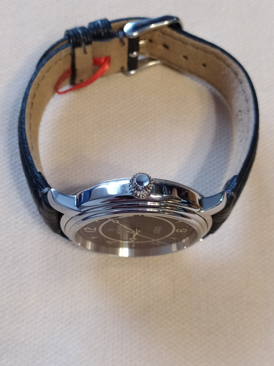 - Черный, гильошированный, накладные арабские цифры и метки, окошко даты.