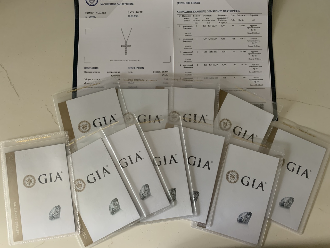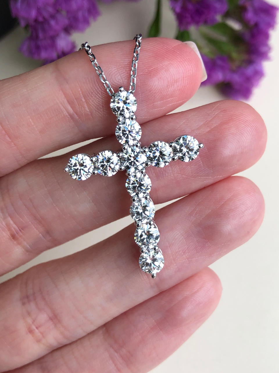Подвеска крест белое золото с бриллиантами 3.33ct VVS1-VVS2 новая (сертификаты GIA) недорого